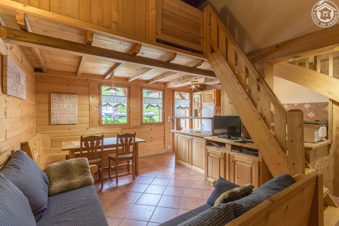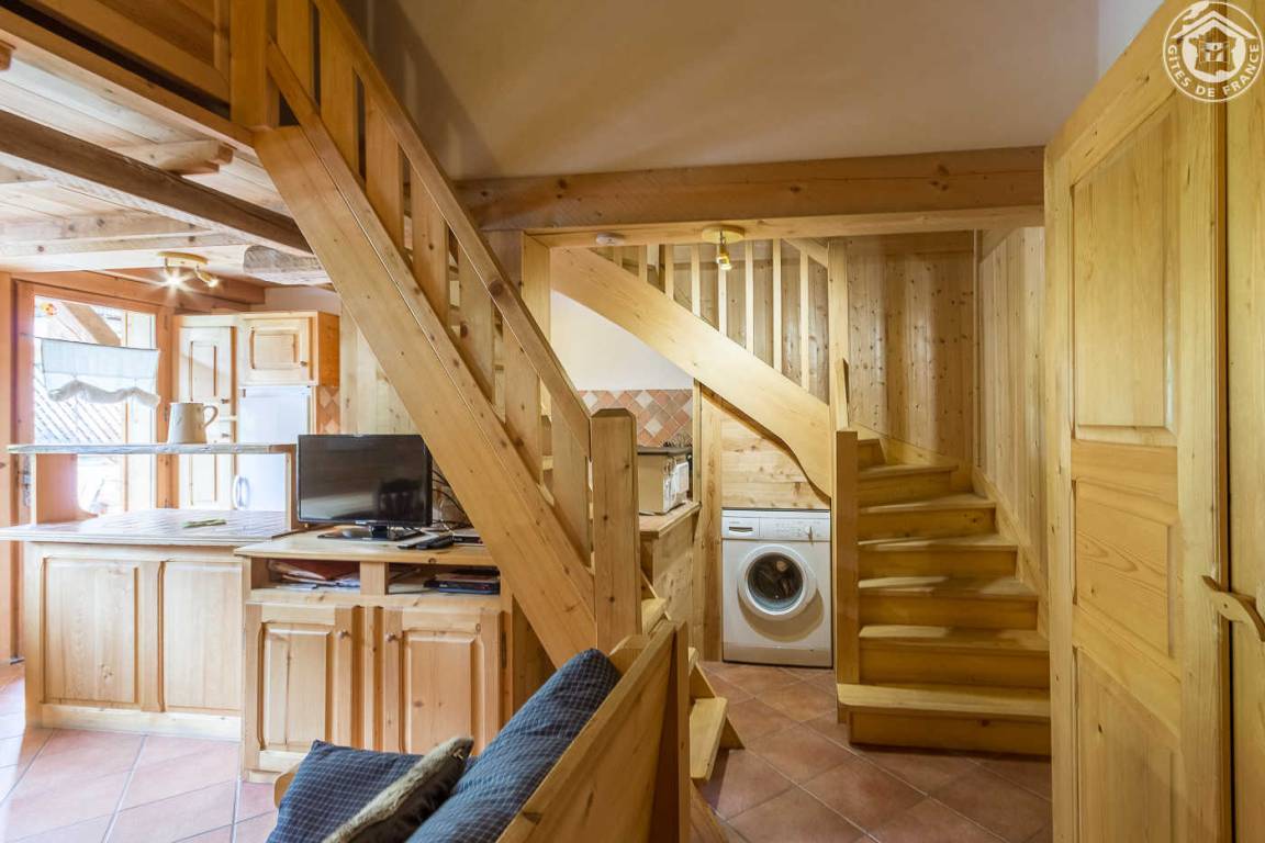 2 Gîtes + 4 Unterkünfte im Haus des Besitzers. Ferienhaus auf 2 Ebenen. Erdgeschoss: Wohnzimmer-Küche mit Sitzecke, TV mit internationalen Satellitenkanälen, WiFi-Verbindung. 1. Stock: 2 Schlafzimmer (1 Doppelbett / 2 Einzelbetten), eine schräge Mezzanine (1 Matratze 90 x 190 cm auf einem Lattenrost ohne Füße - Gesamthöhe des Bodens 8 m²), Duschbad (Dusche und WC) , separates WC. Bettwäsche und Handtücher inklusive. Betten bei Ankunft bezogen. Balkon (gemeinsam mit dem Eigentümer). Private Terrasse. Gemeinschaftsbereich mit Nordischem Bad, Tischtennis, Schaukel und Trampolin. Privatparkplatz mit elektrischer Ladesteckdose (Leistung 3 kW). Ski Notre Dame de Bellecombe / Espace Diamant in 200 m Entfernung, Les Saisies (Abfahrt und Langlauf) in 8 km Entfernung.