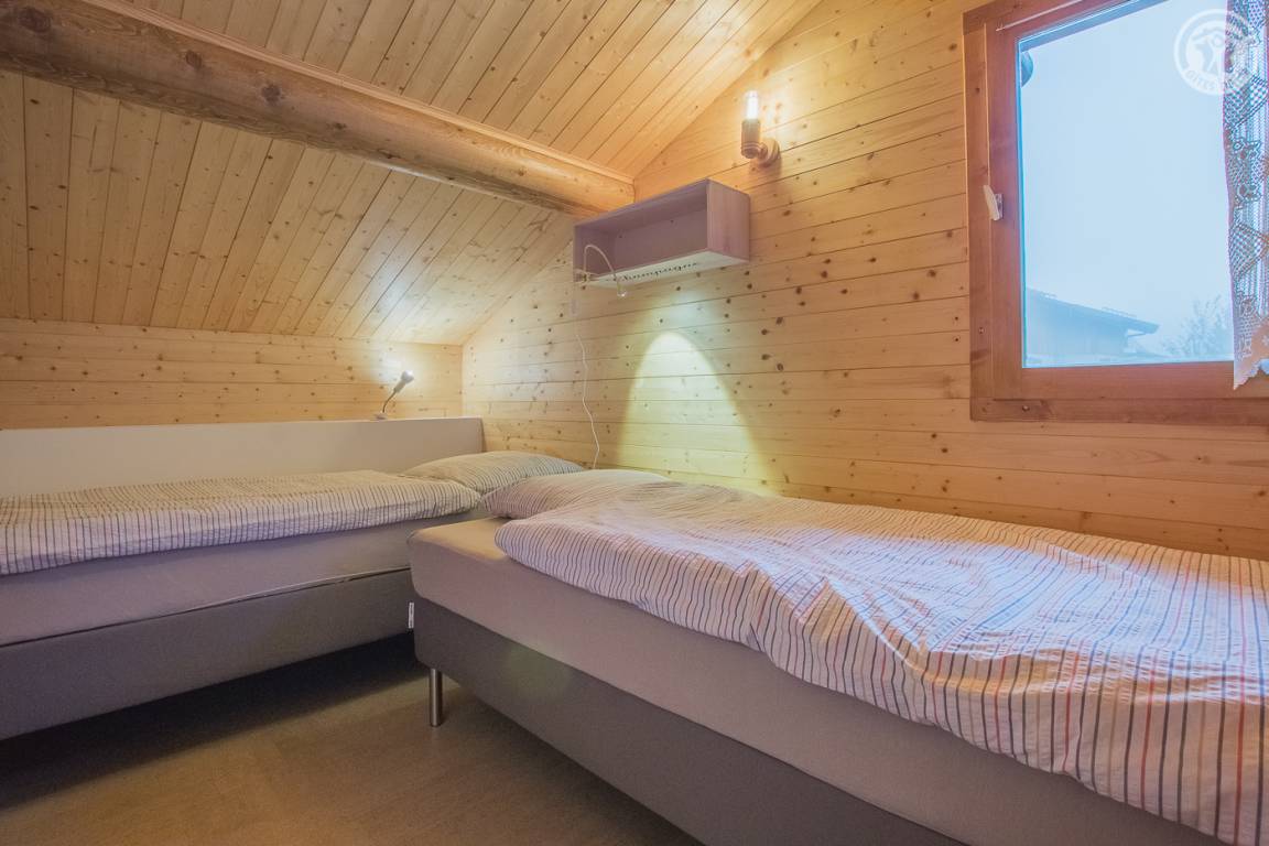Maisonette-Wohnung in einem Chalet mit 2 Mietunterkünften. Unabhängiger Eingang. Erdgeschoss: Küche-Wohnzimmer-Lounge mit Holzpelletofen. Zugang zum Westbalkon mit Panoramablick über das Tal. Duschraum (große Dusche). Badezimmer (Badewanne). Unabhängiges WC. Obergeschoss: 3 Schlafzimmer (2 Schlafzimmer mit 2 Einzelbetten 90x200cm, die zu einem Bett für 2 Personen 180x200cm zusammengestellt werden können / 1 Schlafzimmer mit 2 Einzelbetten 90x200cm). WC mit Waschbecken. Bettwäsche + Haushaltswäsche inklusive. Betten bei Ankunft bezogen. Privatparkplatz in der Nähe des Chalets.