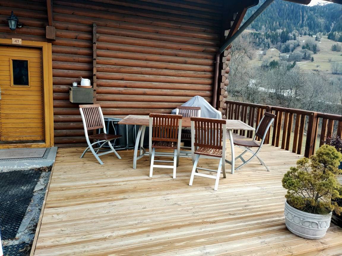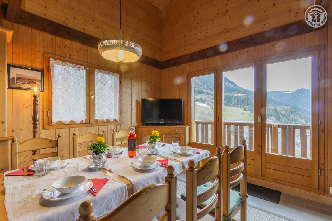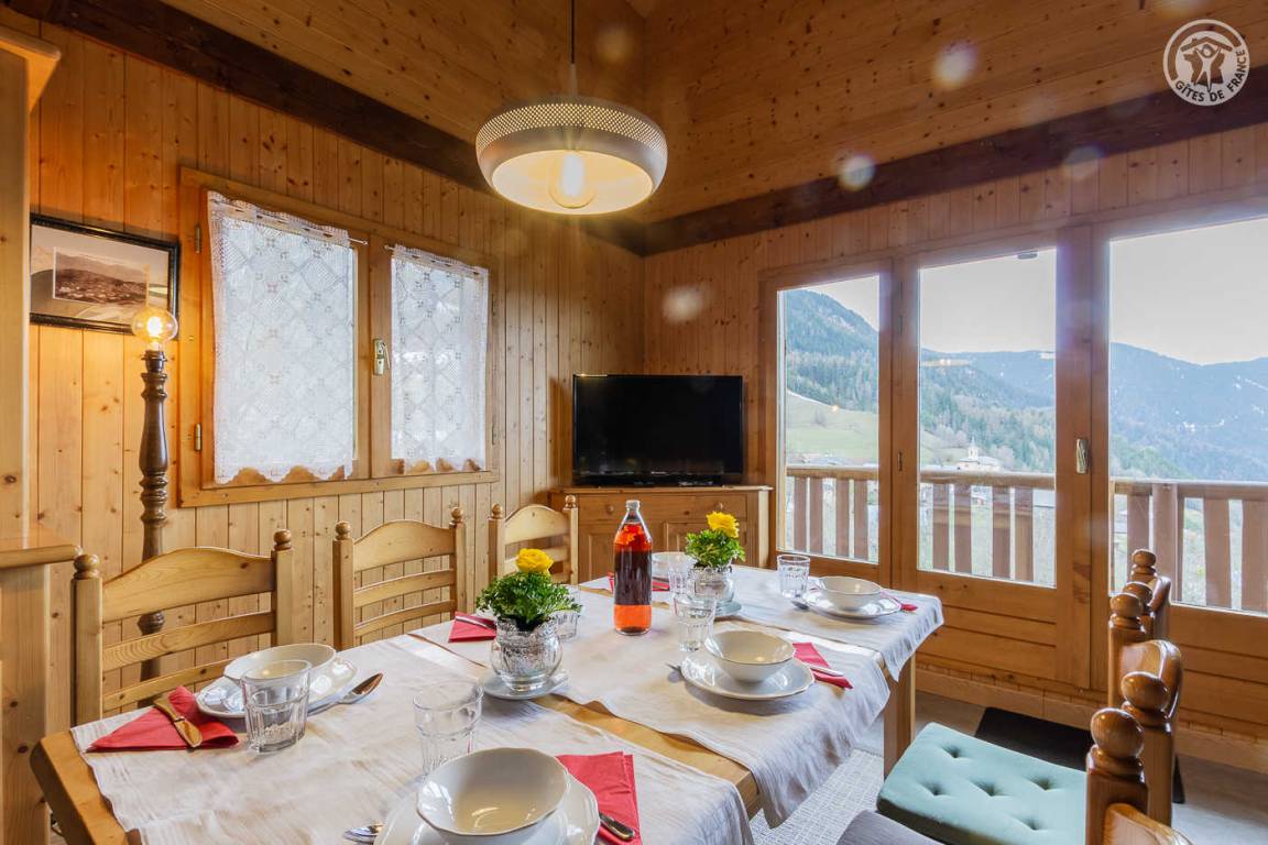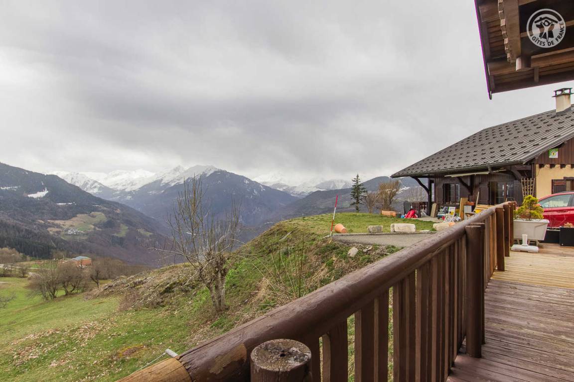 „This gite has a beautifull view from 1300m. There are 2 roads you can take to reach there, one with 26 bends, and one more reasonable road from Aime. There are no shops, so all shopping has to be done from the valley between Moutiers and Bourg Saint Maurice. The gite is very light with windows all around, has a good kitchen area, and outside seating to the west. There are 2 toilets and 2 bathrooms, both functional. Car parking is almost in front of the door. There is a wood pallet stove for the cold season, and electric heaters. The owners live next door, and are very helpful and discrete. The 3 bedrooms are more than enough. This pretty gite is made from wood, and has lots of charm. One of the best ones we stayed in and very reasonably priced!Bravo!“