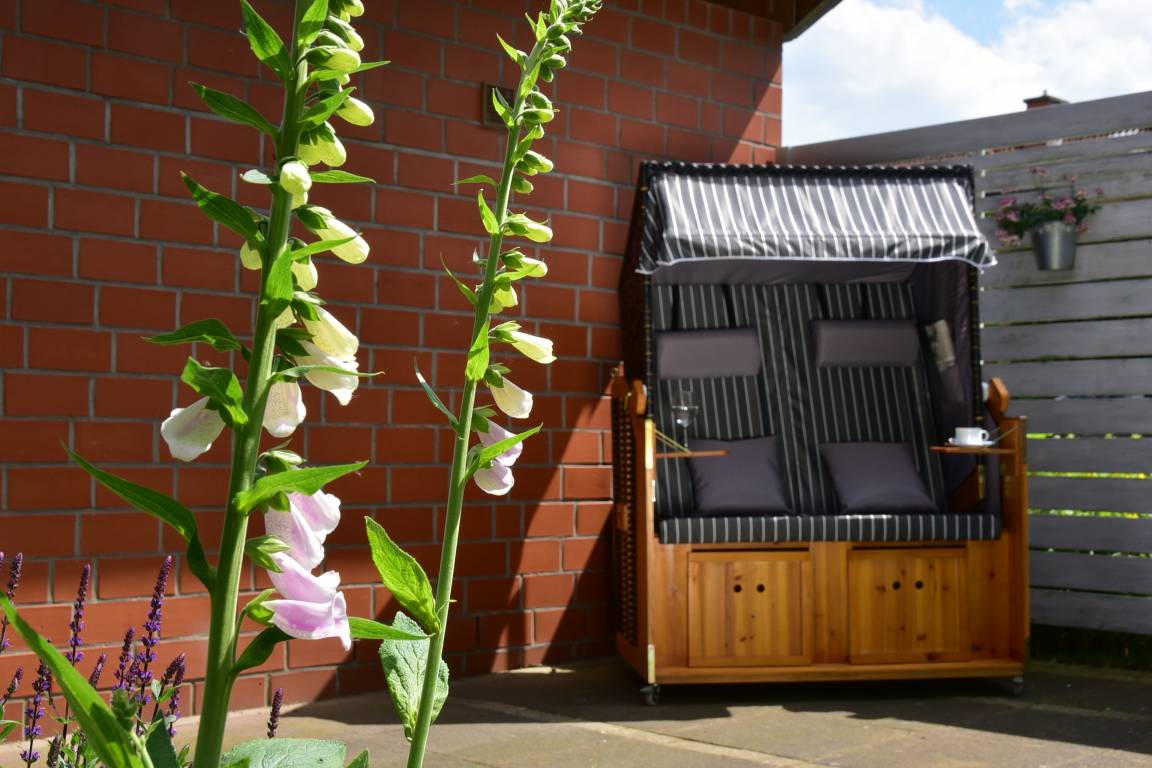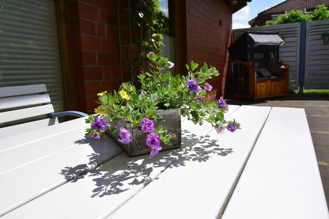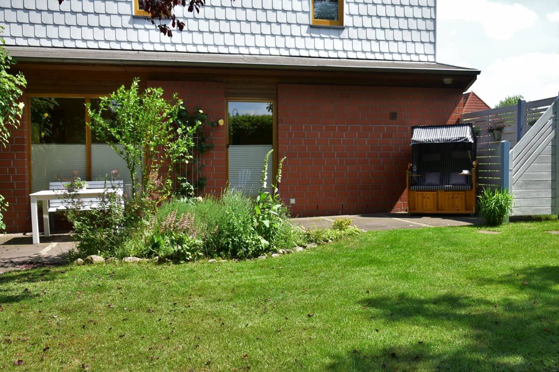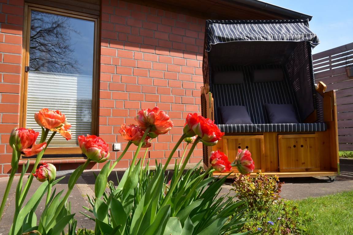 Die Fewo verfügt über eine möblierte Terrasse mit Strandkorb + PKW-Stellplatz und hat ca. 80 qm.
