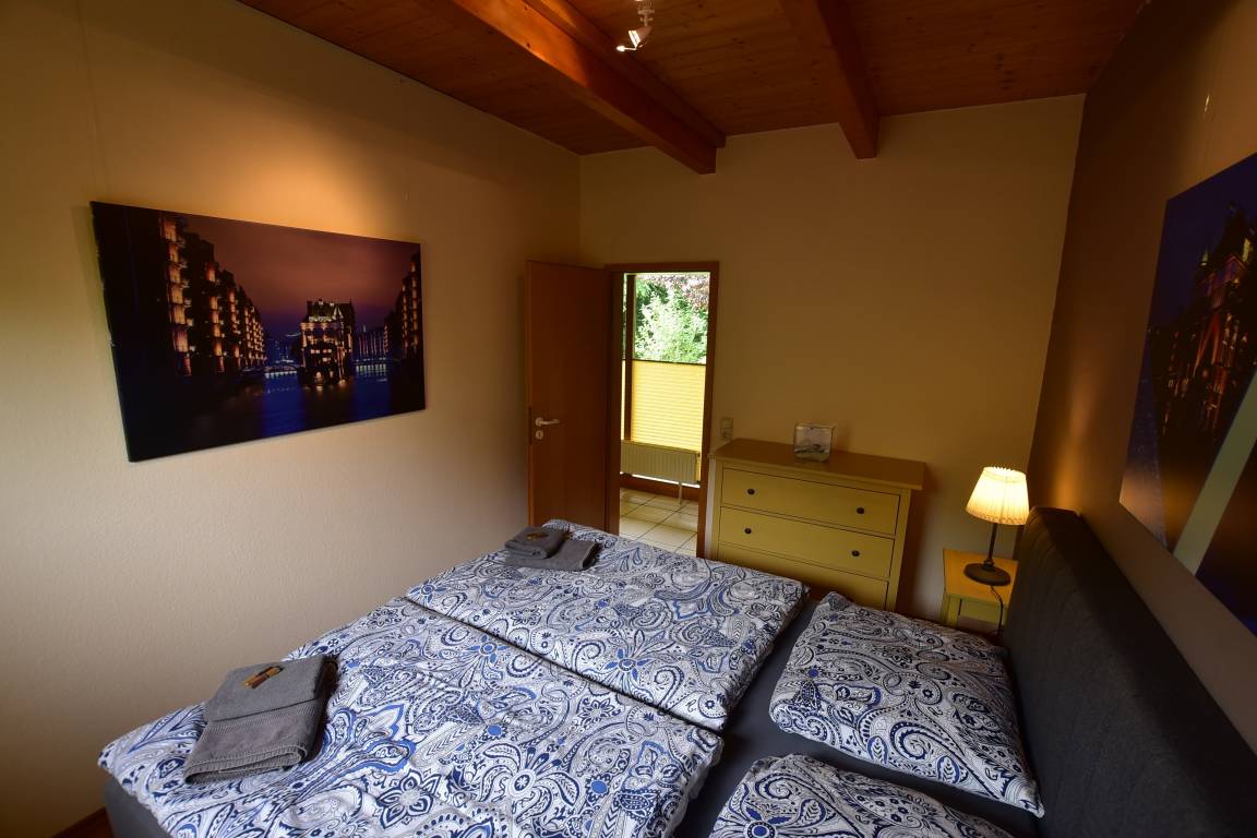 Über einen seperaten Eingang gelangen Sie über den Flur in ein großzügiges Duschbad, zwei getrennte Schlafzimmer mit Doppelbetten.