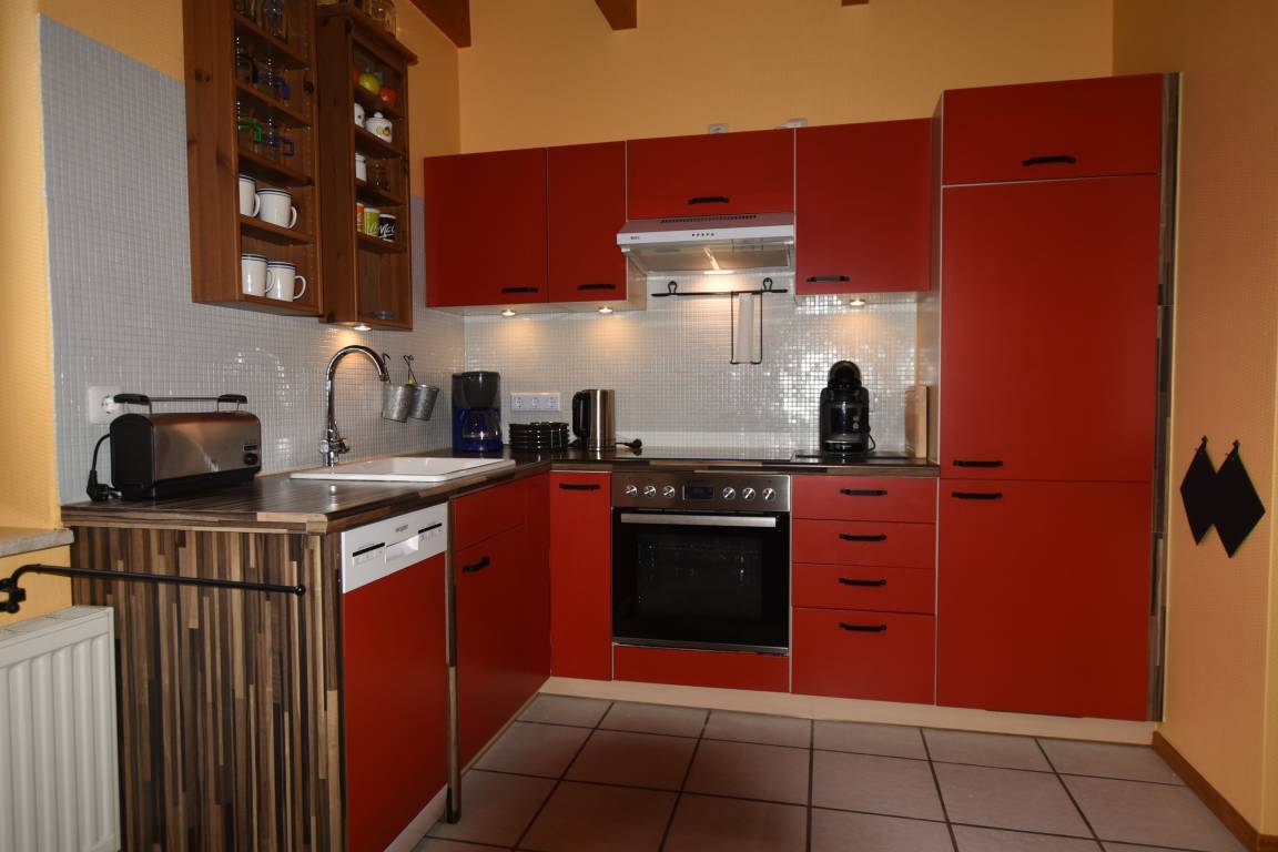 Der Wohn/ Essraum hat eine eigene Küche mit Kühlschrank, Ceranfeld-Herd mit Bachofen, Wrasenabzug, Toaster, Kaffee/ Espressomaschine, Wasserkocher + Geschirrspüler.