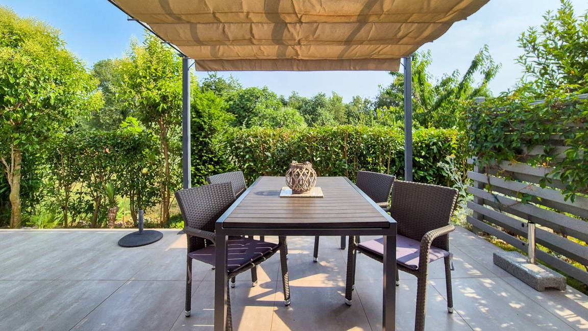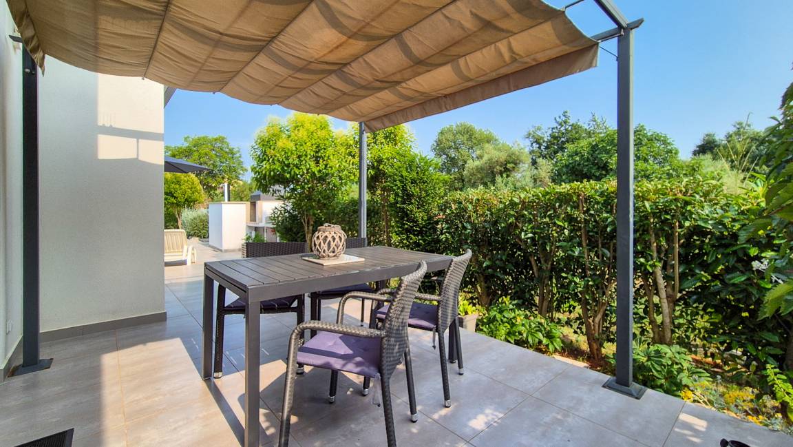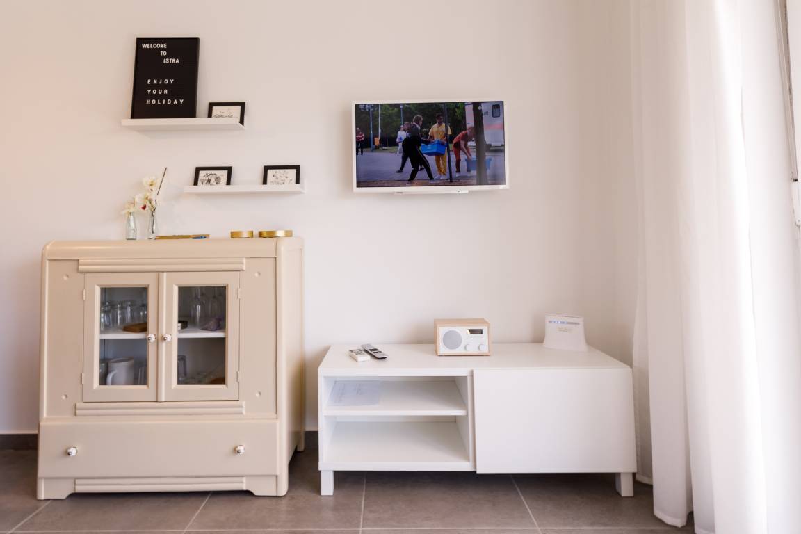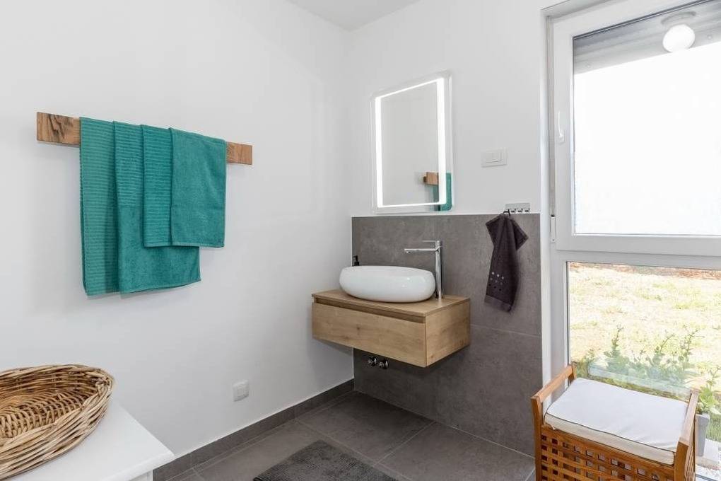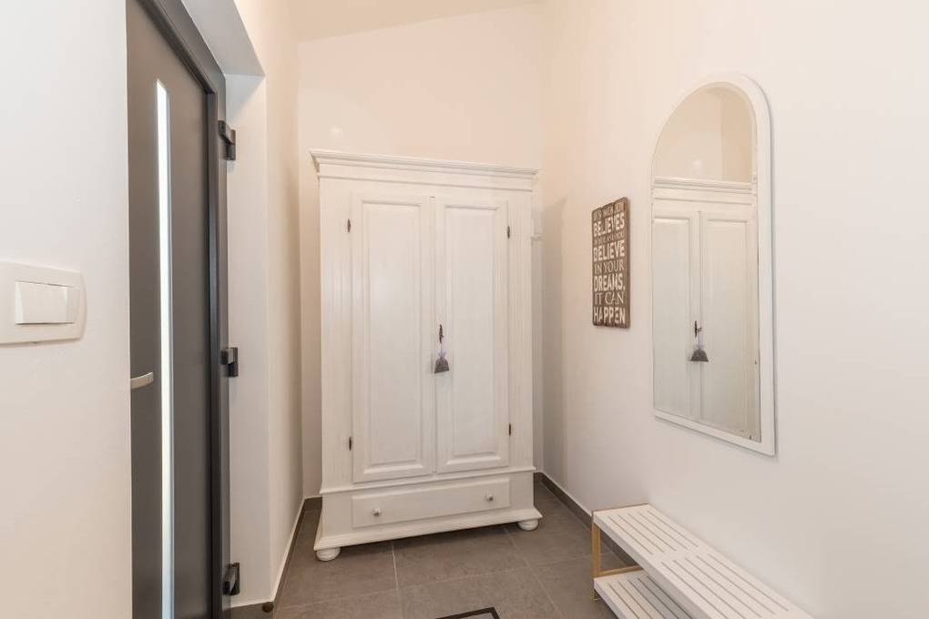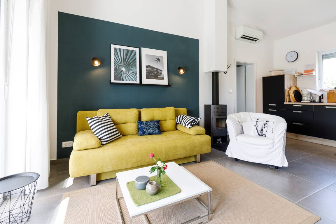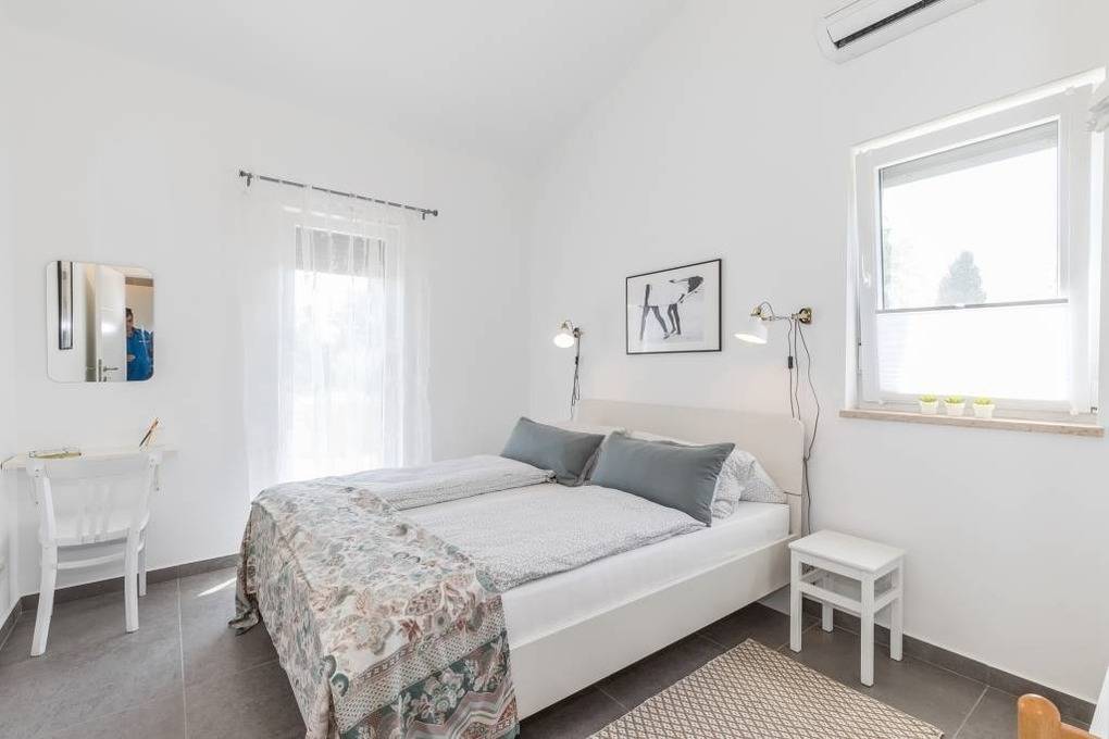 In diesem neuen familienfreundlichen Ferienhaus Villa Gloria mit Pool bieten wir unseren Feriengästen ein Ferienhaus mit Elternschlafzimmer und Bad, Kinderschlafzimmer mit separatem Bad, Wohnbereich mit Terrassenausgang sowie Funktionssofa für eine Person. Der Küchenbereich mit allen Elektrogeräten ist angrenzend.