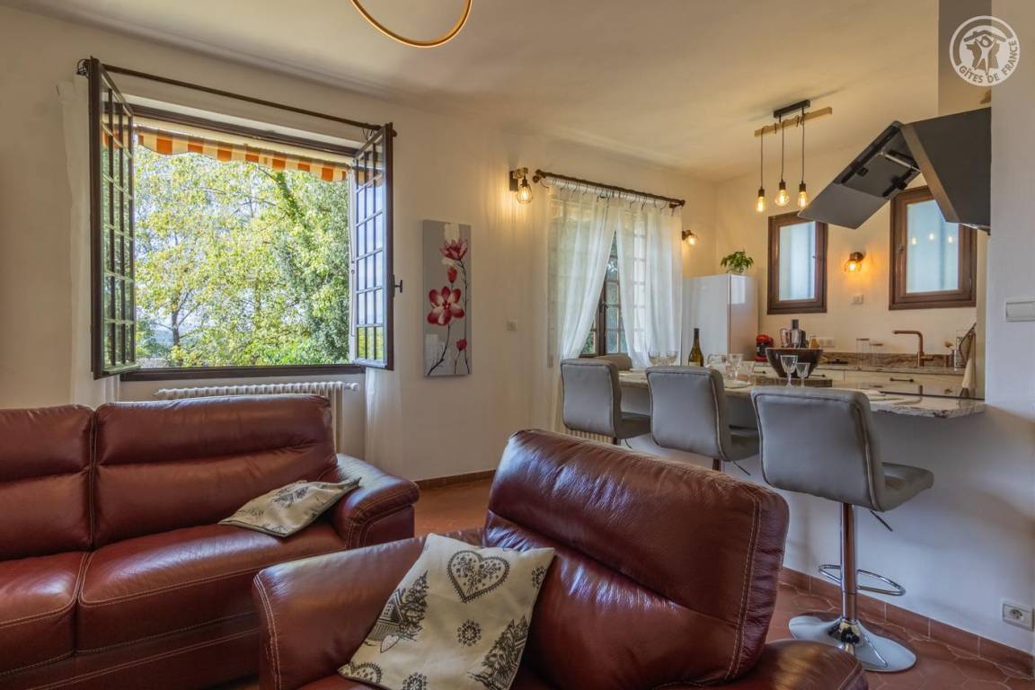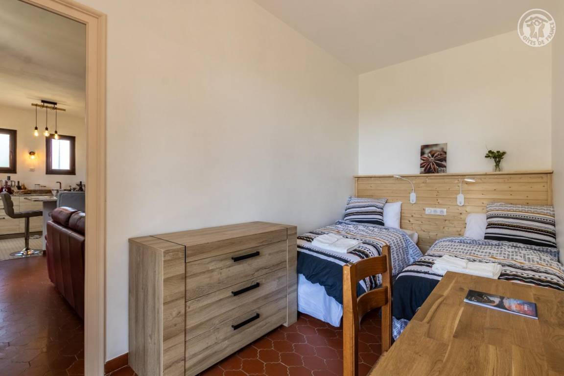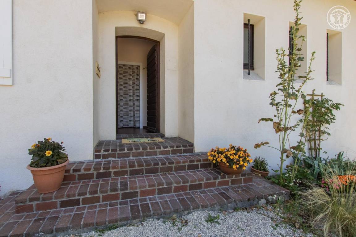 Ferienhaus im Haus der Eigentümer, im Erdgeschoss (unabhängiger Zugang über 4 Stufen vom Parkplatz entfernt), bestehend aus: einem Eingang, einer Wohnküche (Tisch in der Mittelinsel mit 4 Barhockern, kombinierter Mikrowellenherd), Wohnbereich ( Mit Bbox verbundener Fernseher, Bluetooth-Stereoanlage), 1 Schlafzimmer (1 Doppelbett 160 x 200 cm), 1 Schlafzimmer (2 Einzelbetten 80 x 200 cm, die zu einem Doppelbett 160 x 200 cm kombiniert werden können) mit Zugang zur Terrasse, ein Badezimmer mit Wasser (ebenerdige Dusche). , kombinierter Waschtrockner). Private Terrasse. Gemeinsamer Garten mit den Eigentümern.