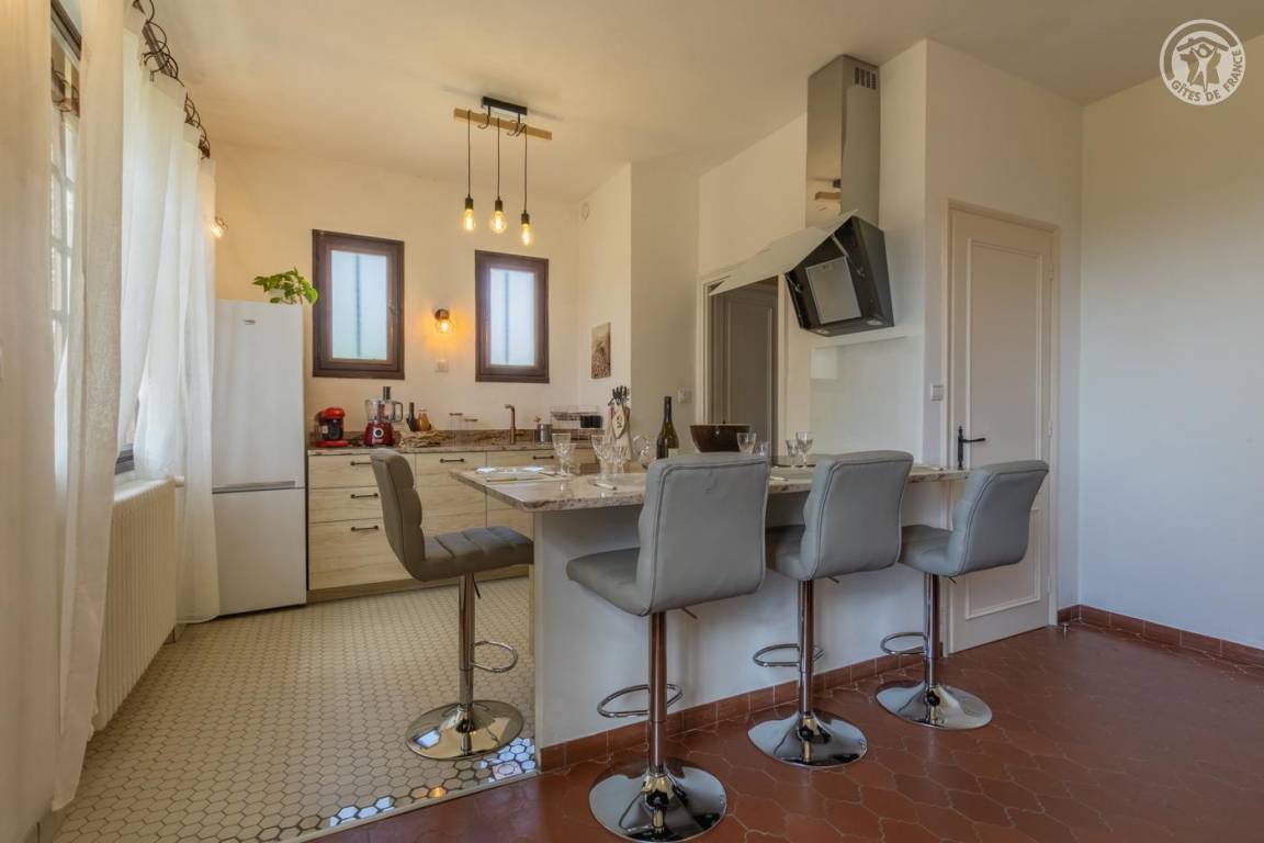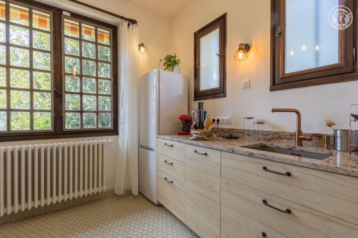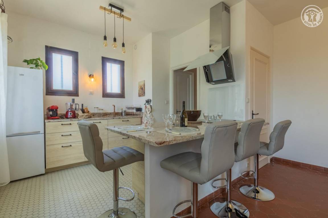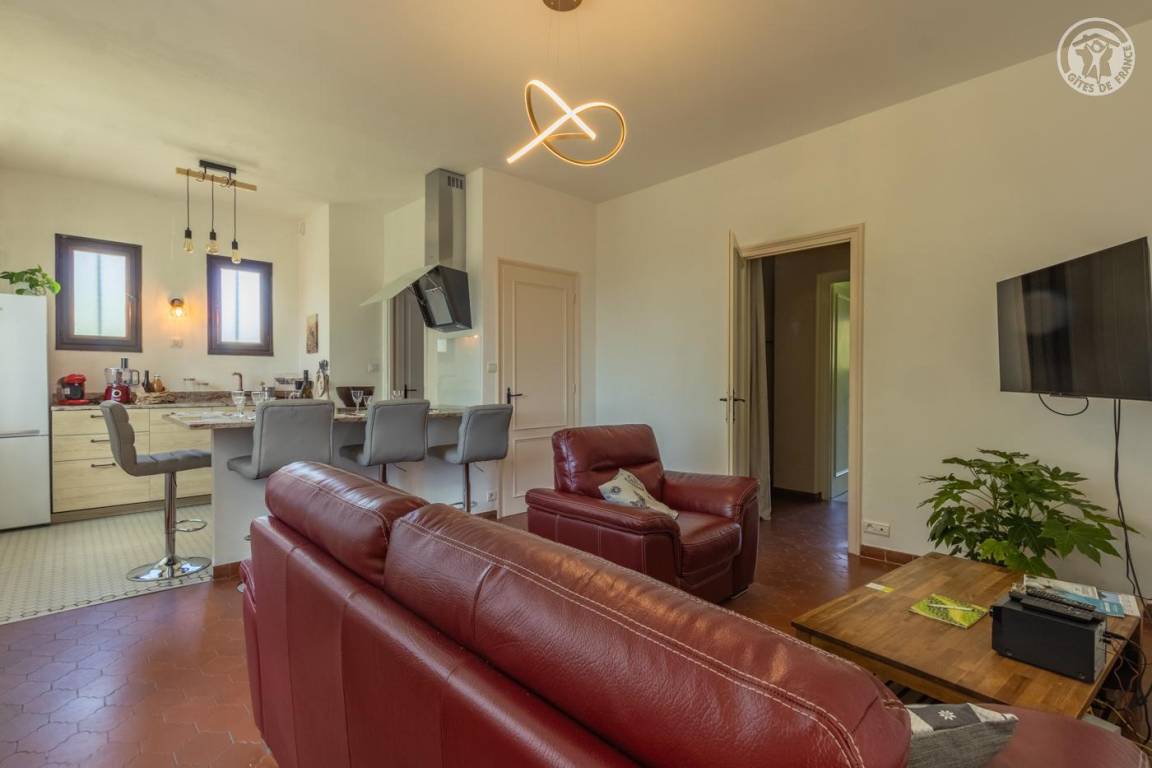 Ferienhaus im Haus der Eigentümer, im Erdgeschoss (unabhängiger Zugang über 4 Stufen vom Parkplatz entfernt), bestehend aus: einem Eingang, einer Wohnküche (Tisch in der Mittelinsel mit 4 Barhockern, kombinierter Mikrowellenherd), Wohnbereich ( Mit Bbox verbundener Fernseher, Bluetooth-Stereoanlage), 1 Schlafzimmer (1 Doppelbett 160 x 200 cm), 1 Schlafzimmer (2 Einzelbetten 80 x 200 cm, die zu einem Doppelbett 160 x 200 cm kombiniert werden können) mit Zugang zur Terrasse, ein Badezimmer mit Wasser (ebenerdige Dusche). , kombinierter Waschtrockner). Private Terrasse. Gemeinsamer Garten mit den Eigentümern.