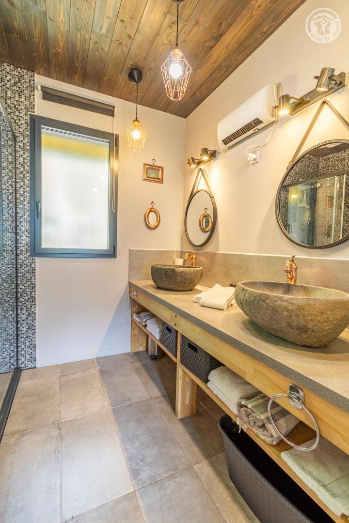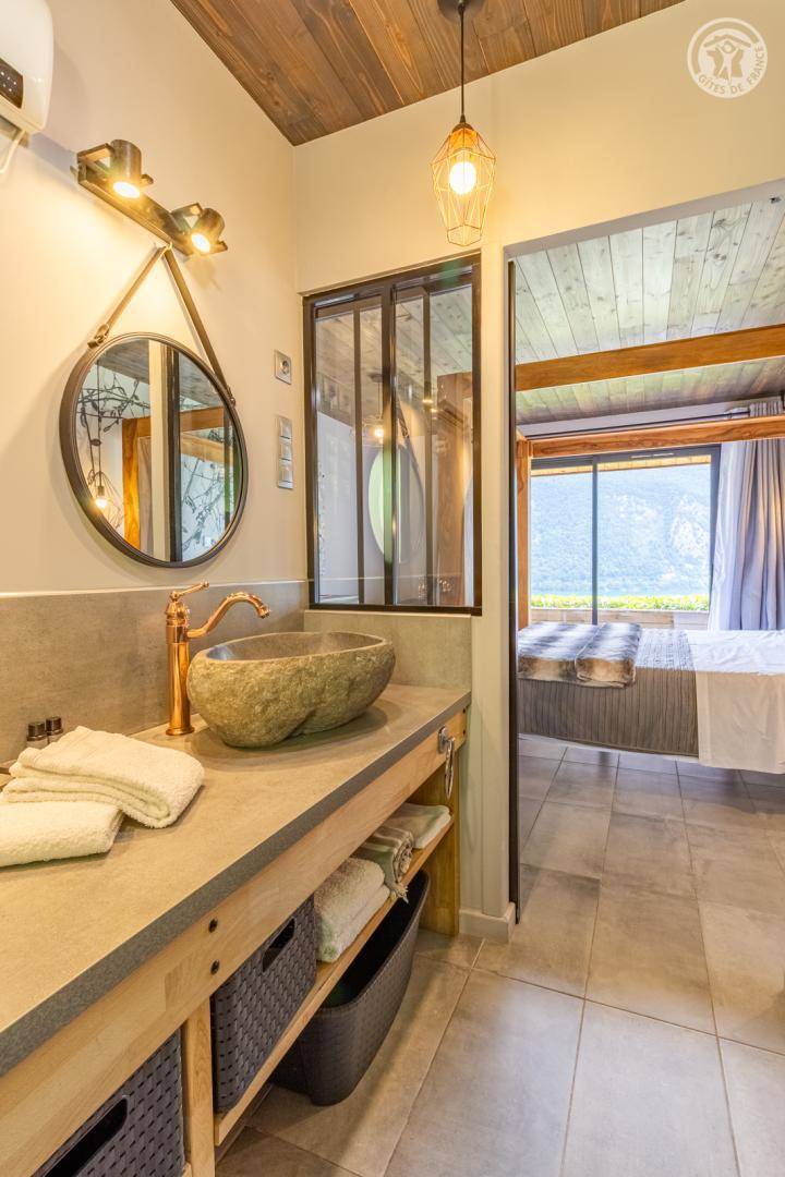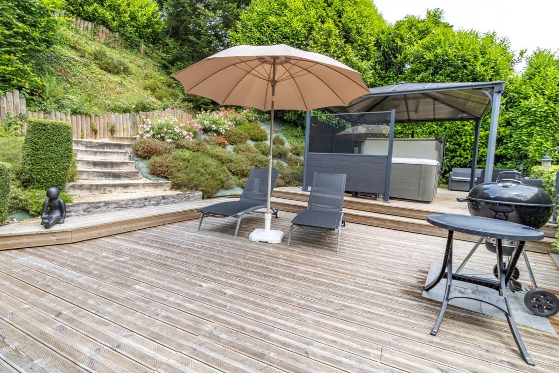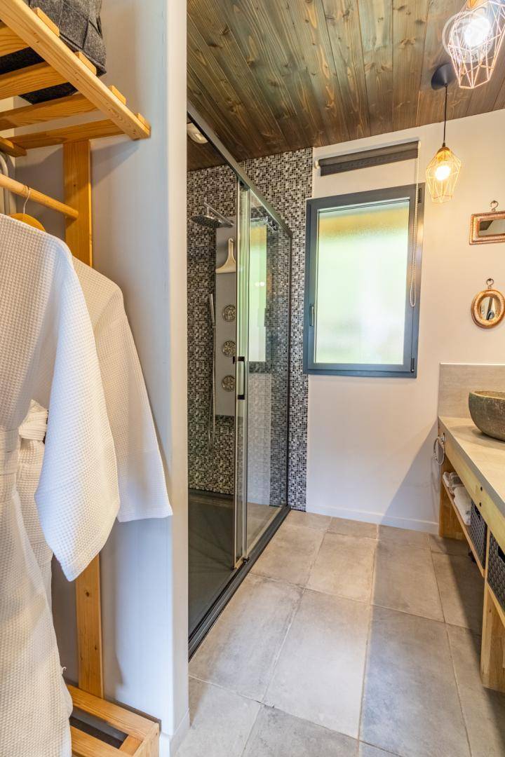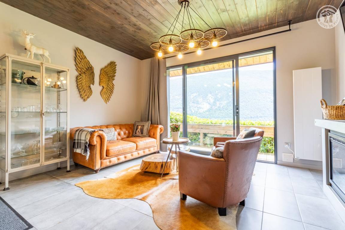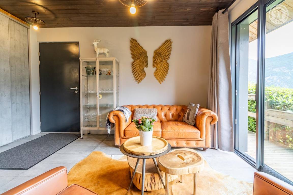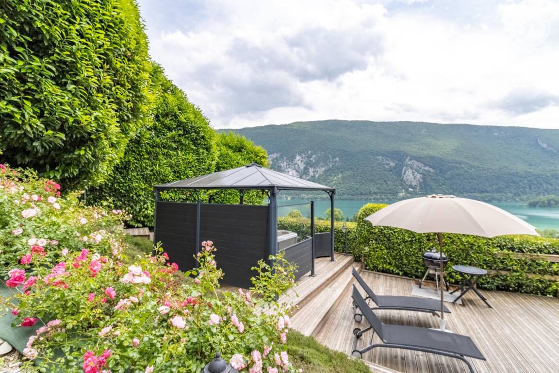 Dieses kleine Fachwerkhaus am Eingang des Grundstücks bietet Ihnen absolute Unabhängigkeit und Privatsphäre, ganz ohne Nachbarn. Am Hang gelegen, wirkt es wie versteckt in der Natur und bietet einen atemberaubenden Blick auf den darunterliegenden See. Vom Wohnzimmer, der Terrasse oder sogar vom Bett aus genießen Sie einen atemberaubenden Blick auf den Lac de Aiguebelette. Zu den Annehmlichkeiten für einen zauberhaften Aufenthalt gehören ein privater Wellnessbereich, eine Sauna und ein beheizter Außenpool sowie hochwertige Materialien für ein optimales, erholsames und intimes Erlebnis.