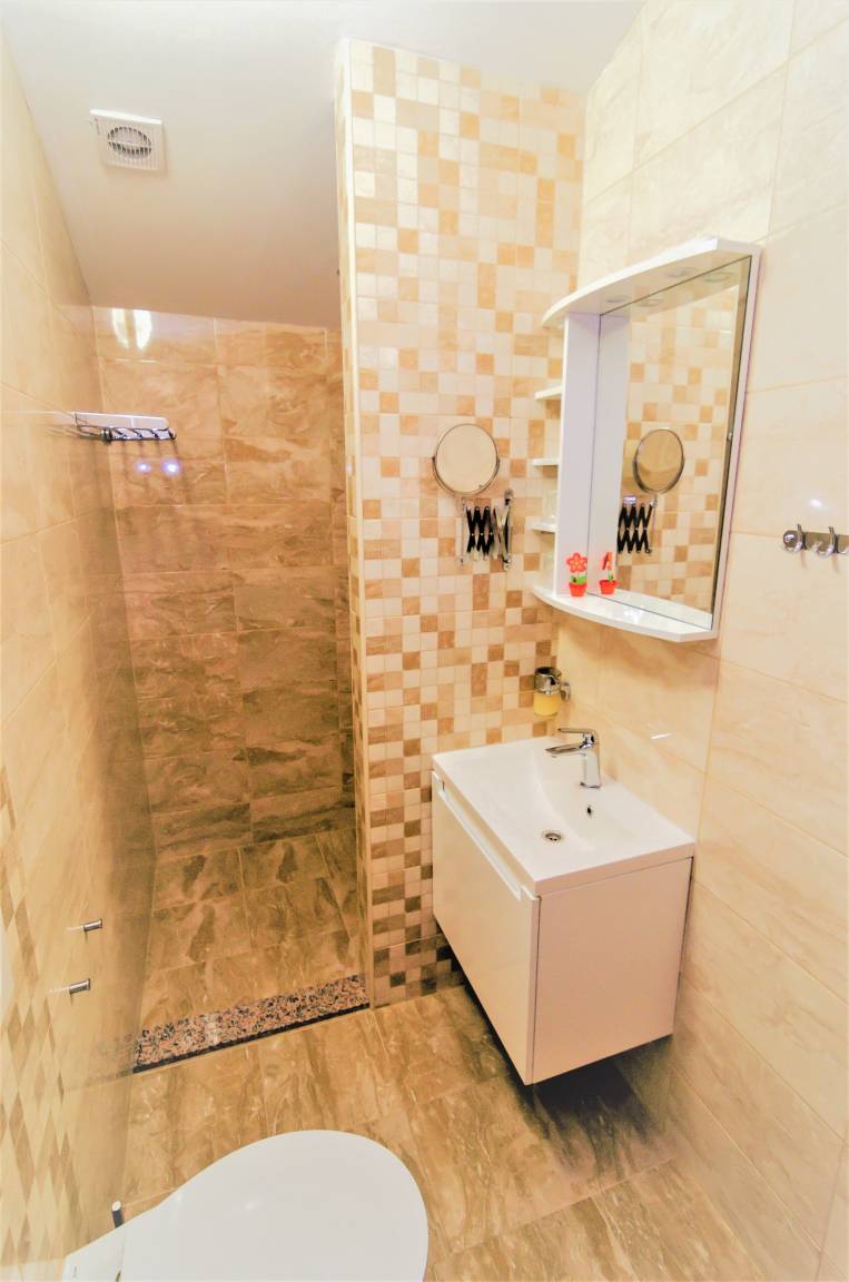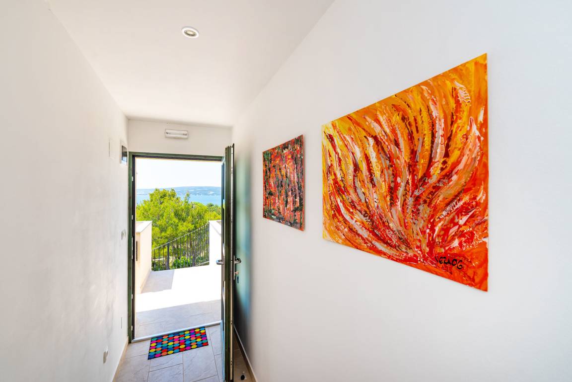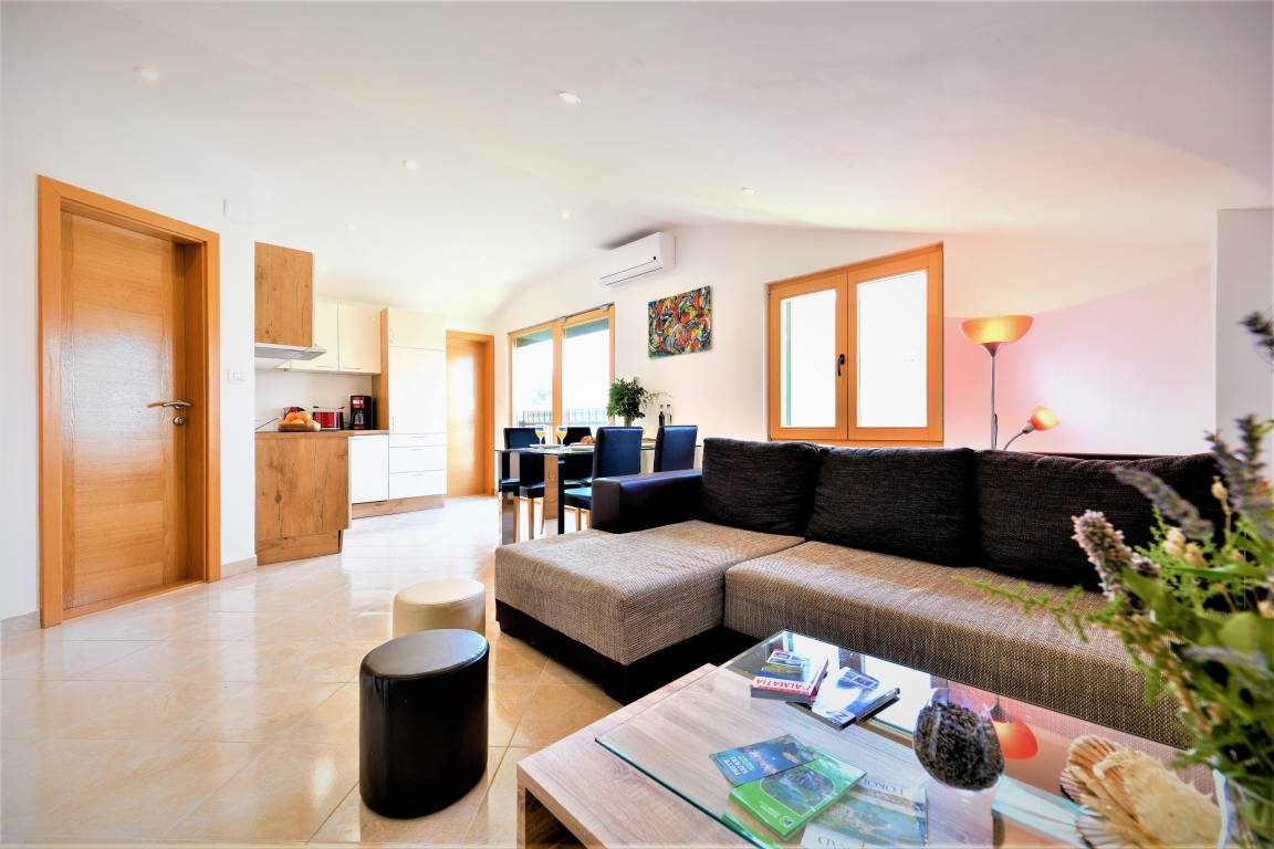 Nach einem erlebnisreichen Tag können Sie sich in einem modernen Apartment mit 1 Schlafzimmer entspannen, das sich im ersten Stock dieses Einfamilienhauses befindet. Das Apartment verfügt über einen Balkon mit Meerblick (Zugang über den Flur), der sich perfekt zum Frühstück oder Morgenkaffee eignet, da er den ganzen Morgen über im Schatten liegt.