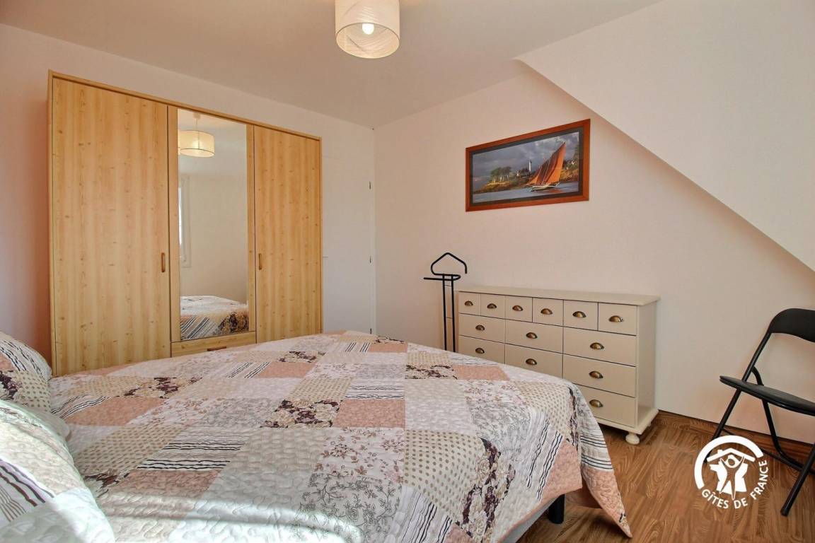 Ihr Ferienhaus verfügt im Erdgeschoss über ein großes Wohnzimmer mit Küche, Wohnzimmer, Wohnzimmer mit Kamin, ein Schlafzimmer mit einem 160x200-Bett, ein Badezimmer und eine separate Toilette. Im Obergeschoss befinden sich 4 Schlafzimmer sowie ein Badezimmer und eine separate Toilette. Ein erstes Schlafzimmer mit einem 160x200 Bett sowie einem Ankleidezimmer. Das zweite mit einem 140x190-Bett. Das dritte mit einem 160x190-Bett, dann das letzte mit einem 160x200-Bett