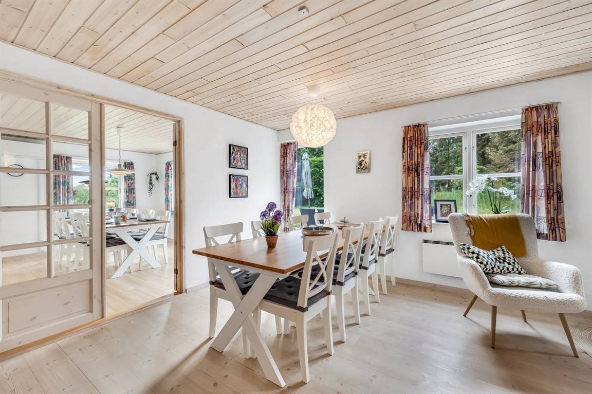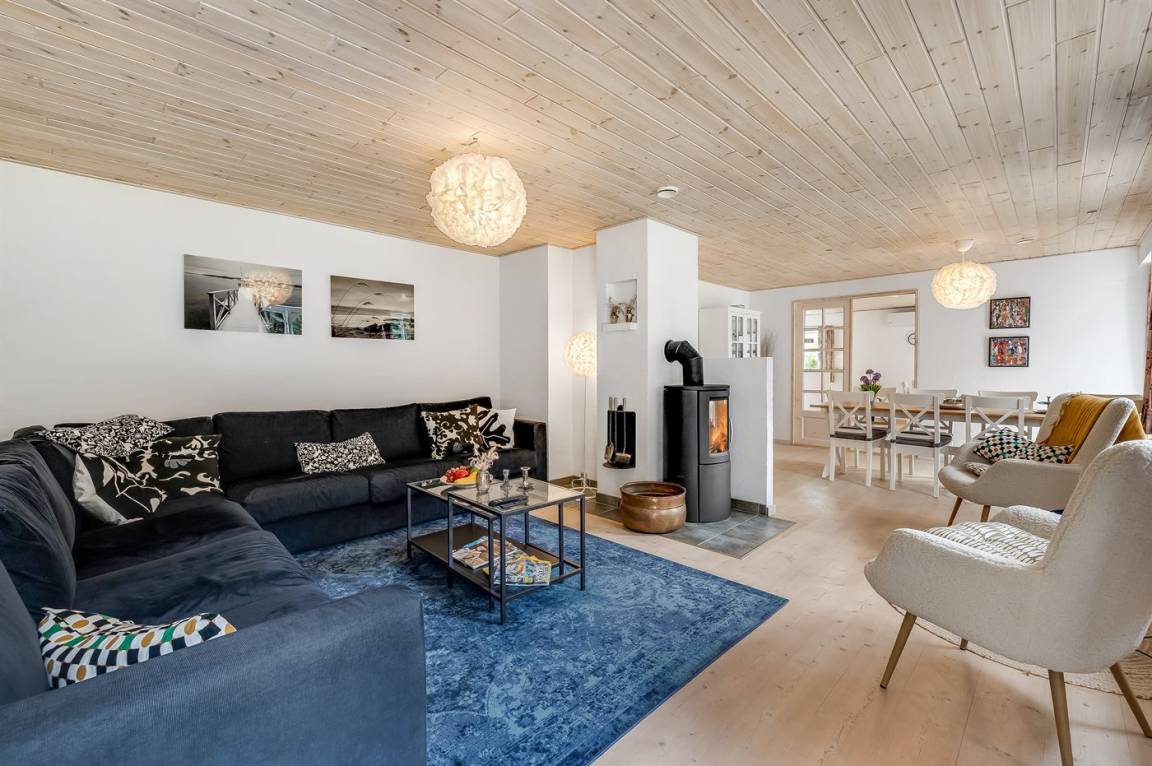 Träumst du von einem Urlaub in einem schönen und gemütlich eingerichteten Ferienhaus mit viel Platz für Aktivitäten - sowohl drinnen als auch draußen? Dann ist dieses Ferienhaus sicher etwas für dich. Innen gibt es viel Platz für das gemütliche Beisammensein mit Brettspiele oder Kartenspiele. Möchtest du komplett entspannen, bietet das Haus sowohl eine Sauna als auch einen Whirlpool an, oder du kannst dich einfach auf der großen Couch schlängeln während du ein gutes Buch liest und eine Tasse Kaffee genießt, während du gleichzeitig dem Knistern des Kaminofens lauschst.