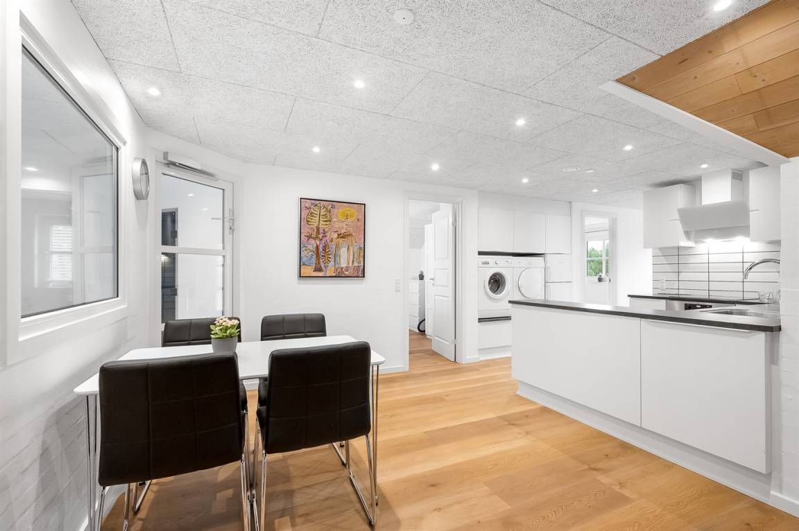 Draußen erwarten euch vier schöne Terrassen, ideal für Grillabende, eine Tasse Kaffee am Morgen oder ein Glas Wein in der Abendsonne. Die große Rasenfläche lädt zu Ballspiele und Spaß ein, während der kleine private Waldteil des Grundstücks perfekt ist, um Hütten zu bauen oder auf Entdeckungstour zu gehen. Für die Kinder gibt es Schaukeln, einen Spielturm, ein Trampolin und einen Sandkasten.
