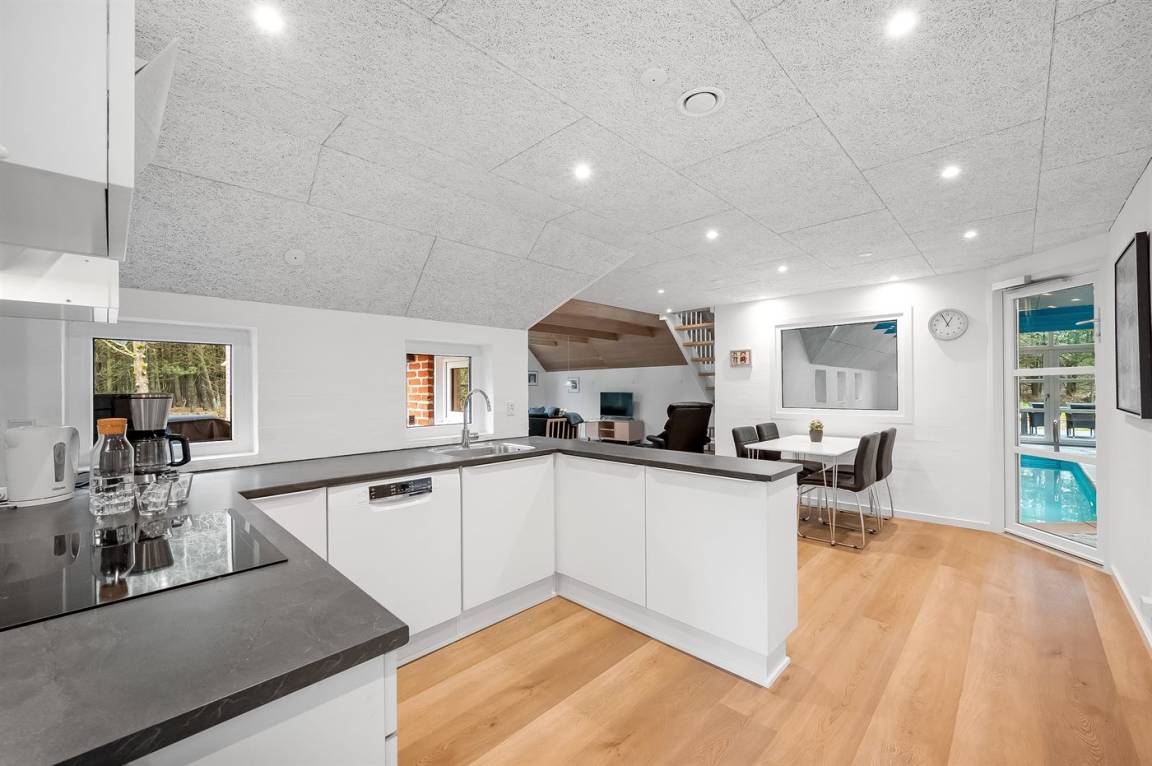 Das Haus wurde 2023 komplett renoviert und präsentiert sich hell, modern und einladend. Es gibt einen großen Wohn- und Essbereich mit schönen sichtbaren Holzbalken und fünf Dachfenstern, die viel natürliches Licht einlassen und von morgens bis abends für die perfekte Urlaubsatmosphäre sorgen.