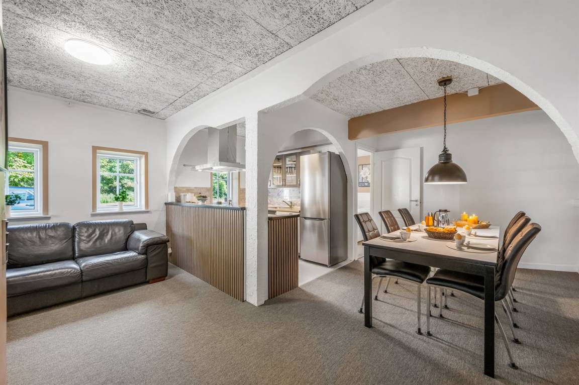 DraußenDie Ferienunterkunft liegt auf einem 2000 m² großen Naturgrundstück. Die Entfernung zum Meer beträgt 15000 m. Die Entfernung zum Fjord beträgt 4000 m. Die Entfernung zu einem See beträgt 3000 m. Die nächste Einkaufsmöglichkeit liegt 2000 m entfernt. In einem Abstand von 7000 m gibt es einen Golfplatz. Es steht ein zum Teil überdachtes und geschlossenes Terrassenareal zur Verfügung. Schaukel. Fußballtor. Parkplatz auf dem Grundstück.