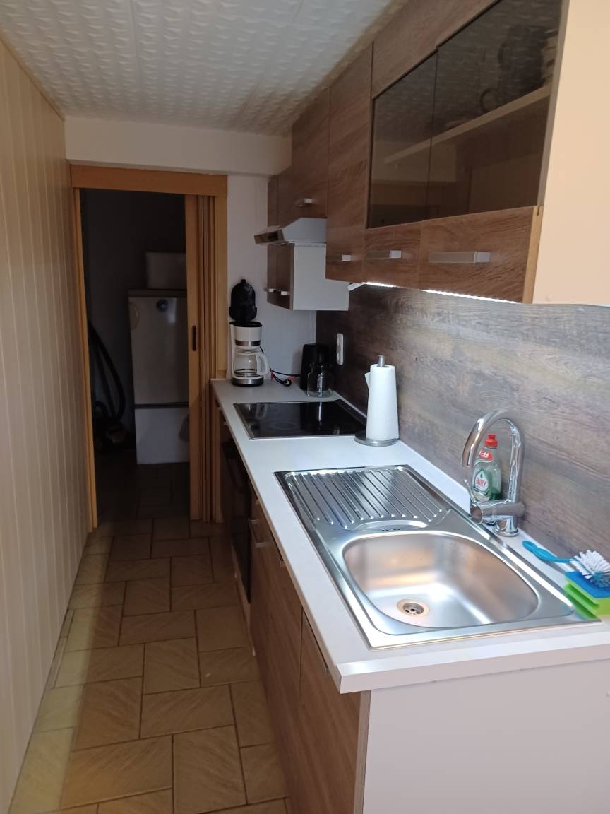Diese Ferienwohnung liegt in der unteren Etage eines Gästehauses mit eigenem Eingang. Sie verfügt über eine eigene Terrasse mit Sitzgelegenheiten und Grill. Es handelt sich um einen Wohn- Schlafbereich, mit Sitzecke und separatem Esstisch. Es sind zwei Einzelbetten vorhanden, die bei Bedarf auseinander gestellt werden können.