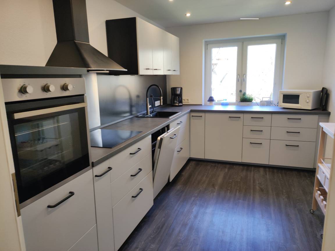 „Schön aufgeteilte, moderne und sehr ruhig gelegene Wohnung mit viel Platz und grosser Einbauküche. Große, überdachte Terasse. Großzügiges Bad leider mit Geruchsbelästigung (Kanal). Die Matratzen sind sehr hart. Parkplatz direkt an der Wohnung. Vermieter sind vor Ort ansprechbar.“