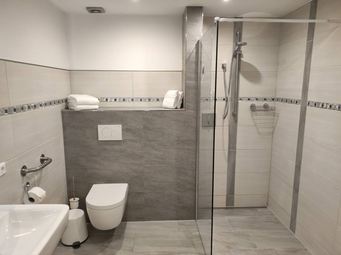 „Familie Obermöller vermietet hier eine großzügig geschnittene, barrierearme Ferienwohnung mit breiten, Rollator/ Rollstuhlgeeigneten Türen, ein Bad mit bodengleicher Dusche einer gut ausgestattete Küche mit viel Stauraum. Das gemütliche Wohnzimmer läd zum ausruhen nach einem aktiven Urlaubstag ein. Das Schlafzimmer ist ruhig gelegen und lässt sich für einen erholsamen Schlaf abdunkeln. Auch hier viel Platz und Stauraum. Unsere Gastgeber waren sehr freundlich und zur begrüßen erwarteten uns liebevolle Aufmerksamkeiten in der Wohnung. Sie hatten gute Tipps für Ausflüge und Restaurants bereit. Es waren schöne erholsame Tage im, zentral in Schleswig Holstein gelegen, kleinen Ort Nübel.“