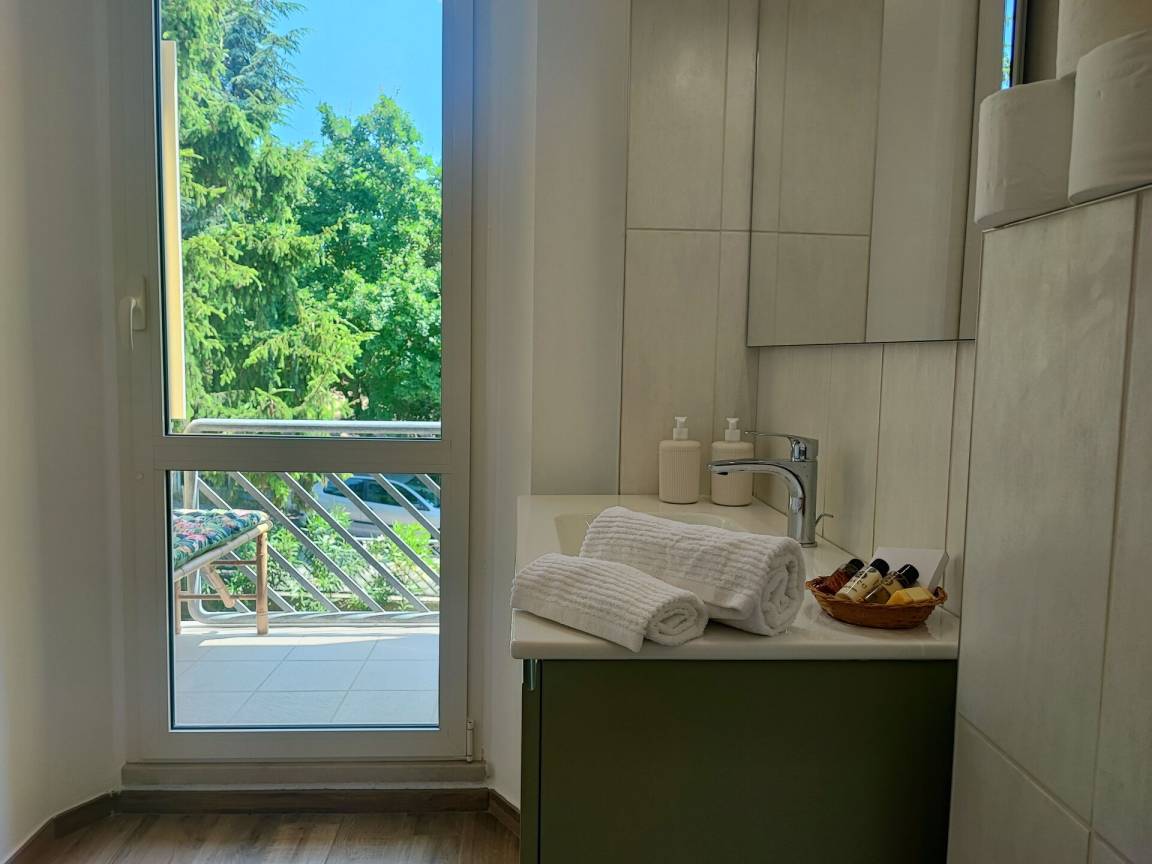 Badezimmer: Waschbecken, WC, Bidet, Dusche, Waschmaschine, WiFi Internet.
