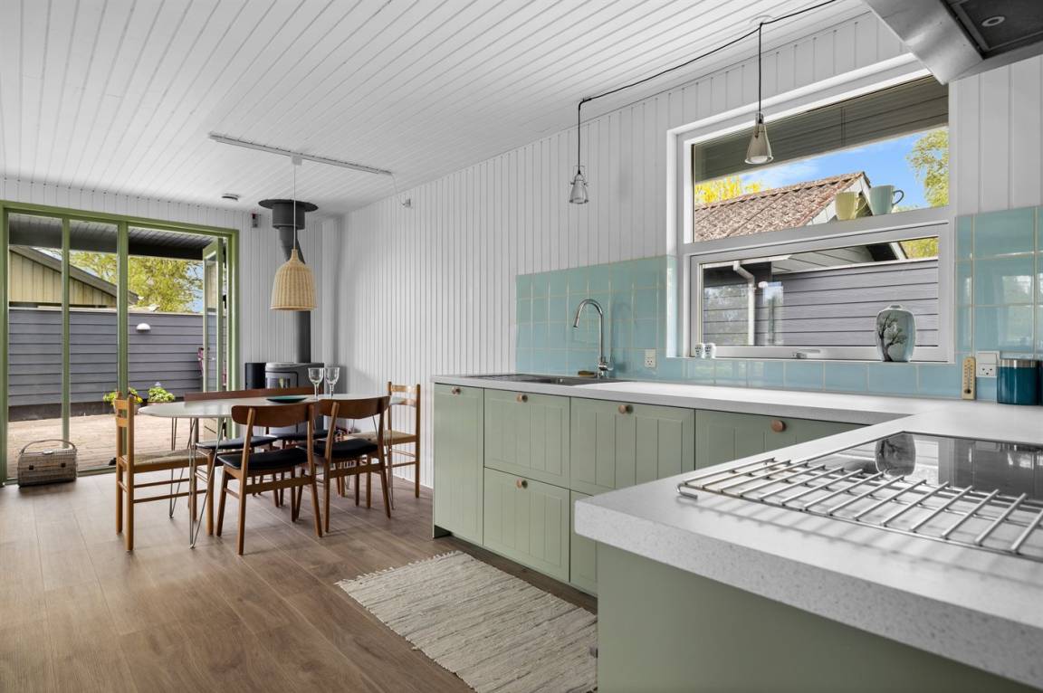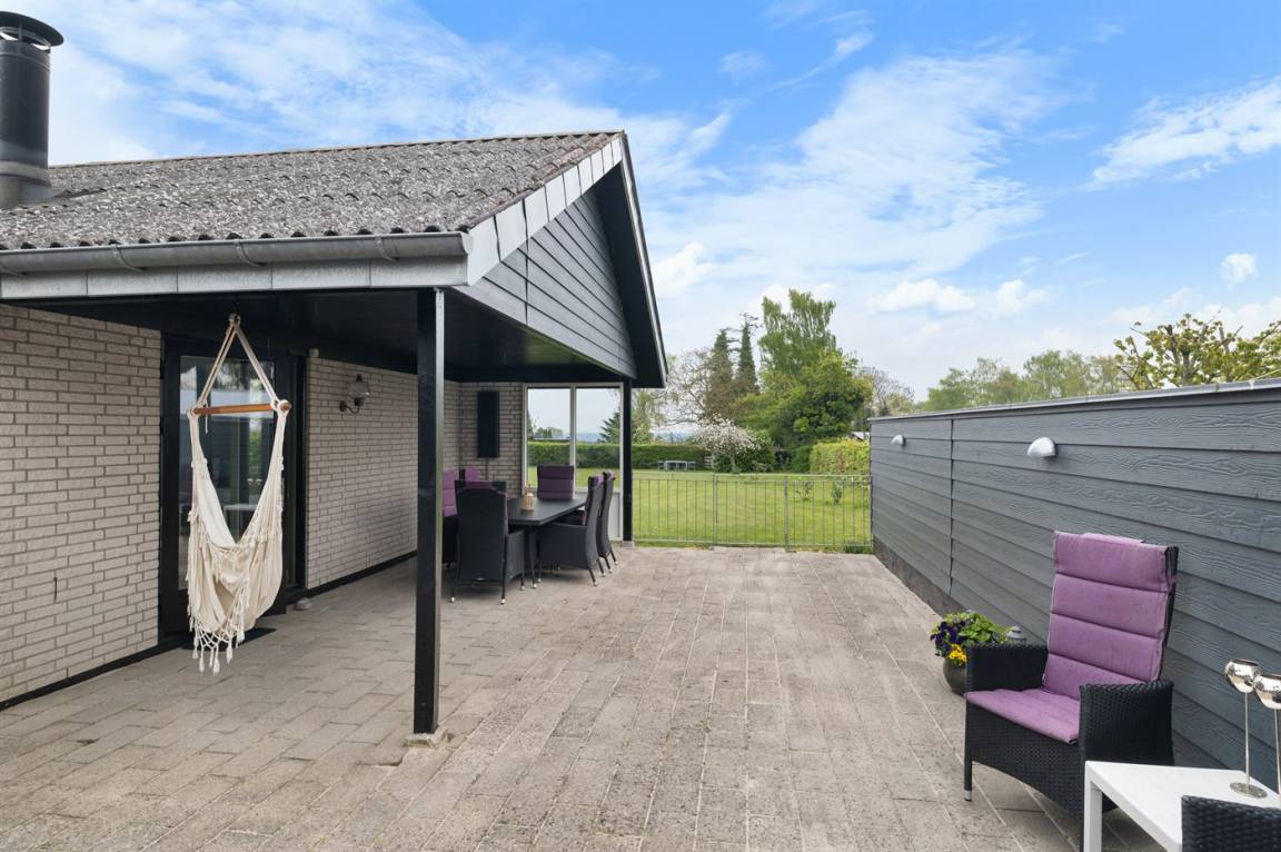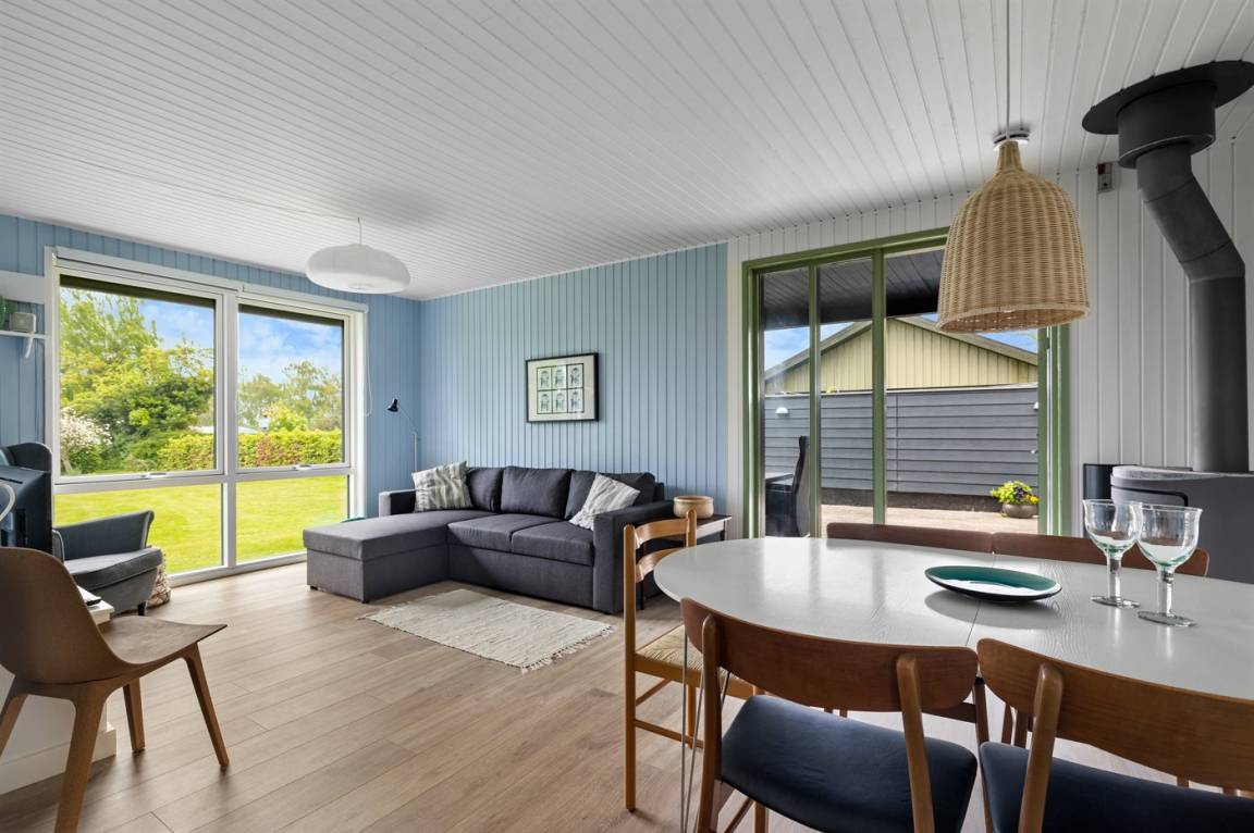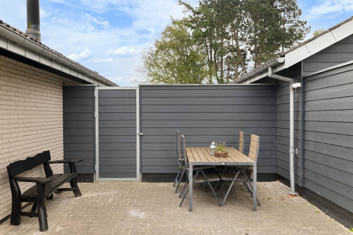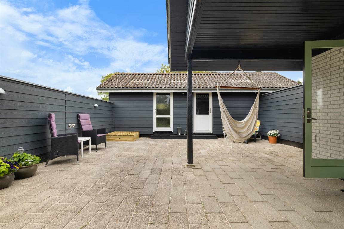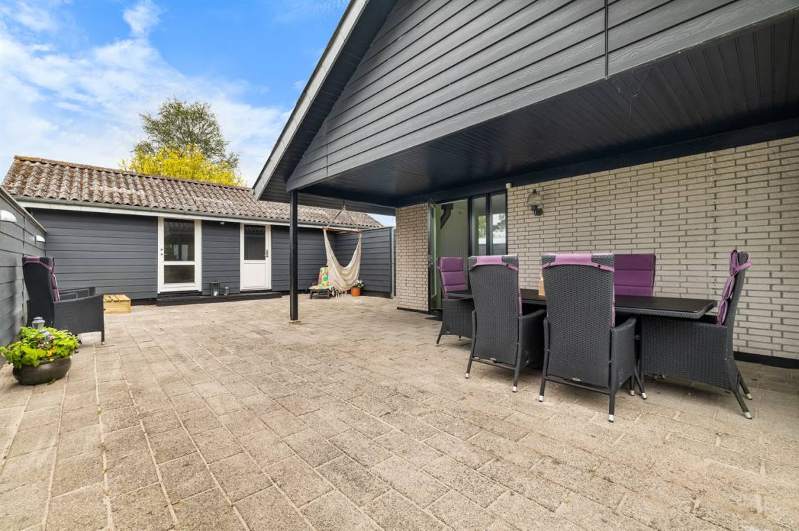 Ein gemütliches Ferienhaus mit einer schönen Terrassenfläche – auf einem großen Grundstück gelegen. Das Haus wurde 2025 modernisiert und ist hell und einladend eingerichtet. Die große, geschlossene und nach Süden ausgerichtete Terrasse ist teilweise überdacht und lädt zu gemütlichen Stunden zu jeder Tageszeit ein. Direkt an die Terrasse schließt sich auch das Gästehaus an, in dem sich zwei der Schlafplätze befinden.