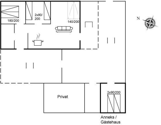 SchlafverhältnisseDie Schlafplätze verteilen sich auf 3 Schlafräume. 2 Schlafplätze in einem Doppelbett. 4 Schlafplätze in Einzelbetten. 2 Schlafplätze auf einer Doppelschlafcouch. 2 von diesen Schlafplätzen befinden sich im Gästehaus und 2 befinden sich im Wohnzimmer. Ferner steht ein Kinderbett zur Verfügung.
