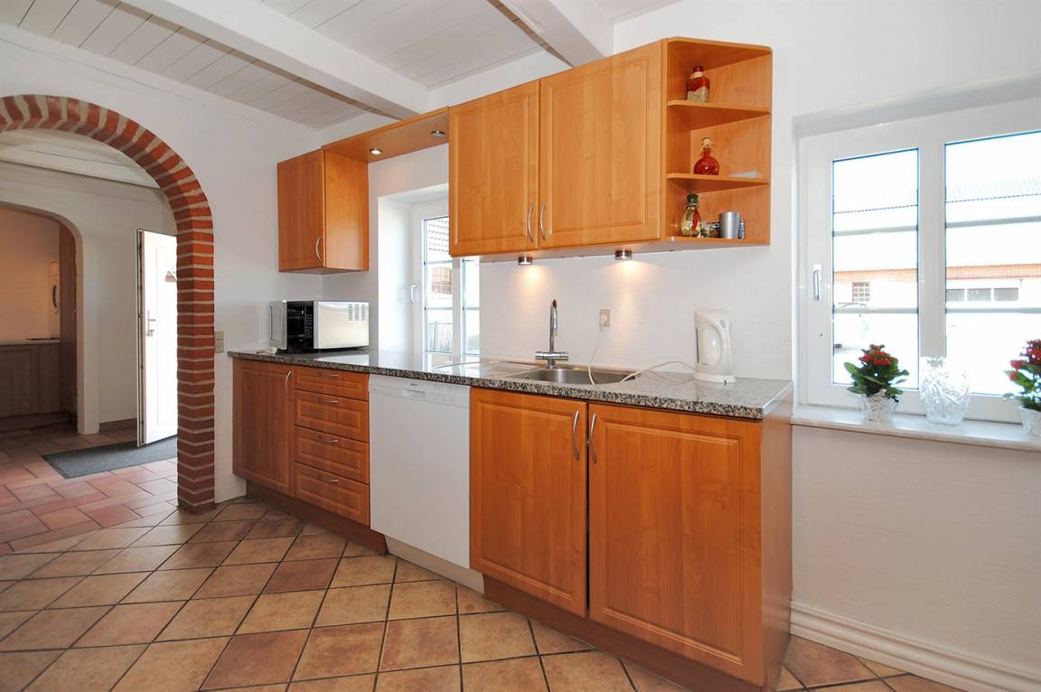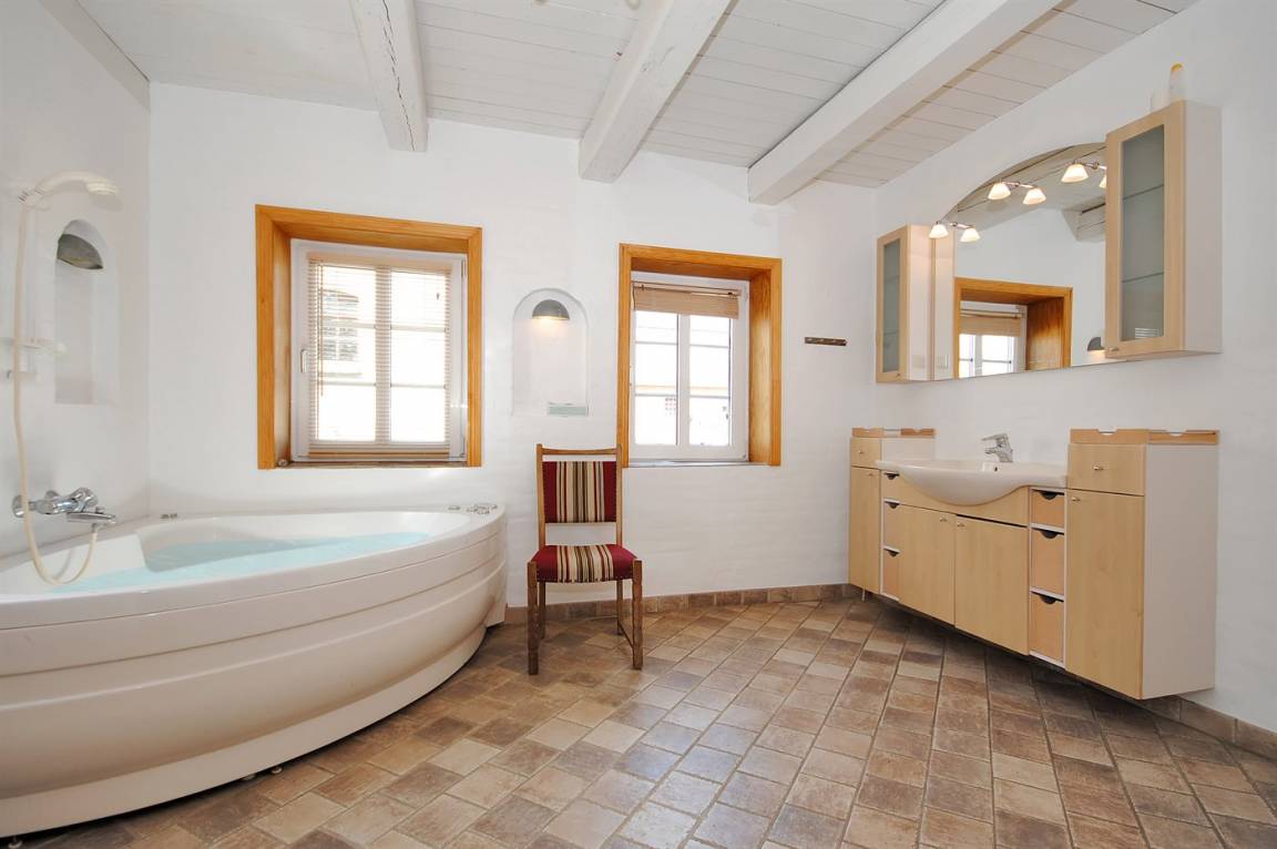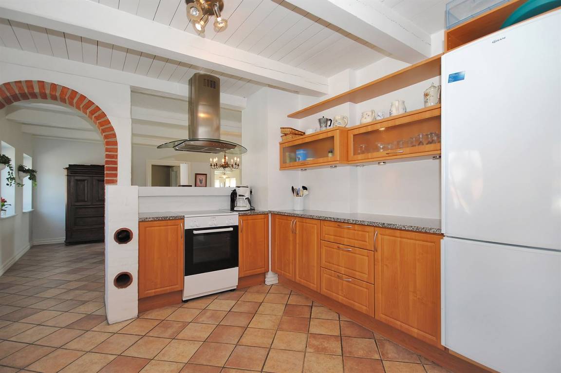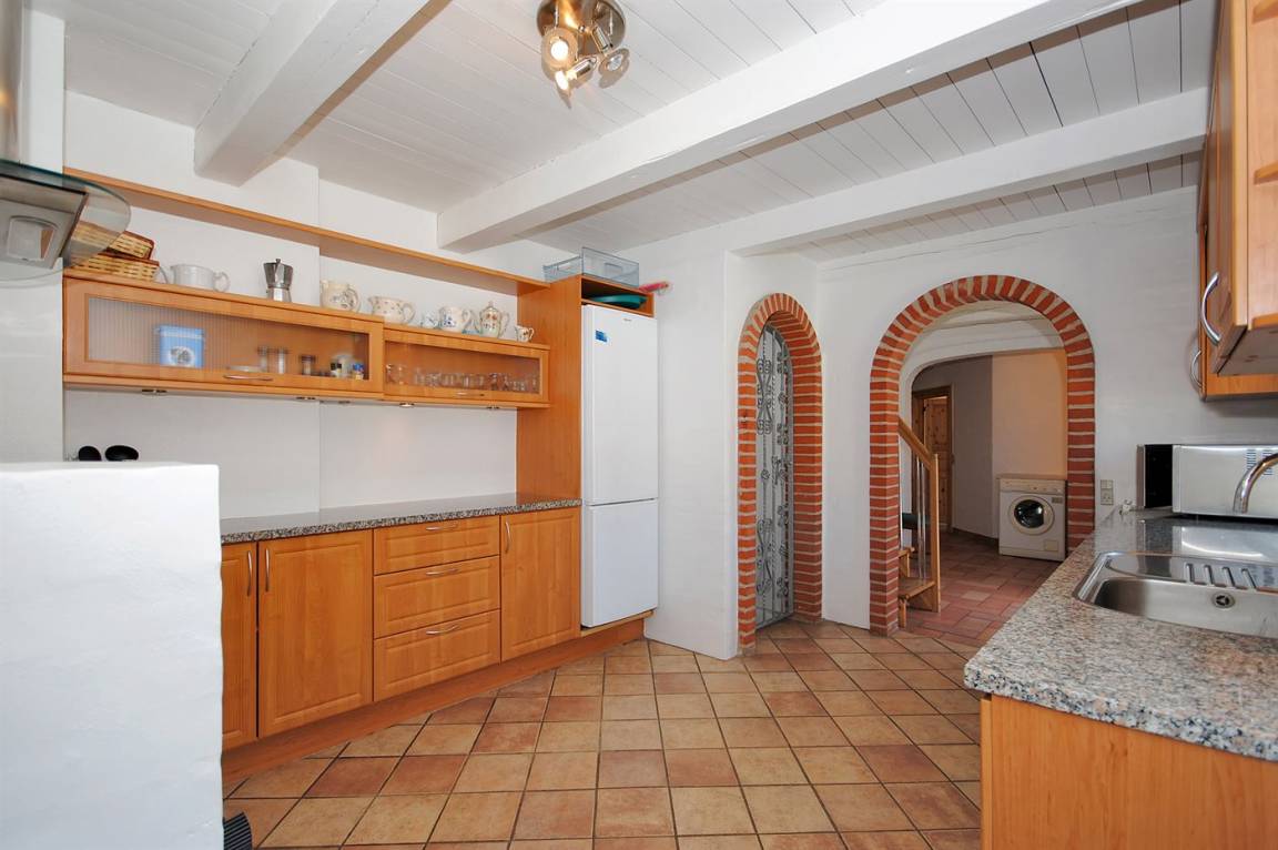 Holzboden in dem Wohnzimmer und den Schlafzimmern, sonst beheizbare Klinkerböden. Großes Badezimmer mit Duschnische und 2-Pers.-Whirlpool. Zusätzliches Badezimmer mit Duschnische. Gut ausgestattete Küche mit Tiefkühlgerät, Geschirrspüler, Herd mit Ceran-Feld und Umluftofen. Spülküche mit Waschmaschine und Wäschetrockner.