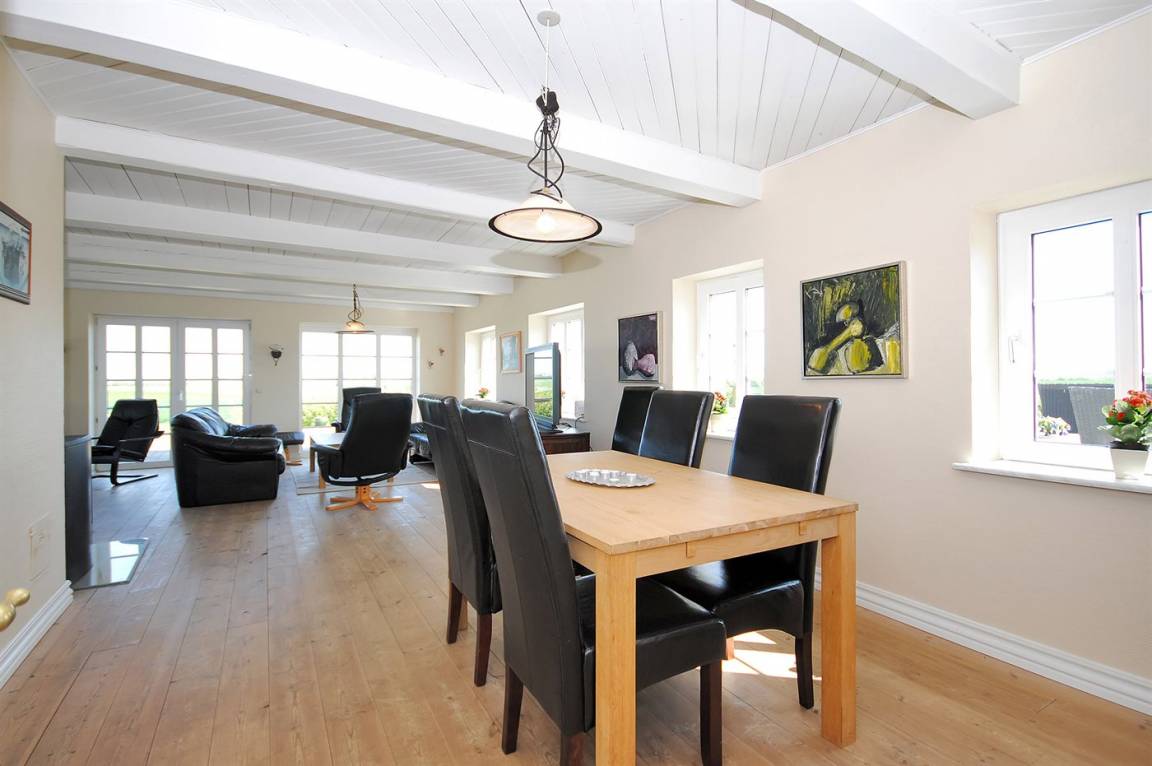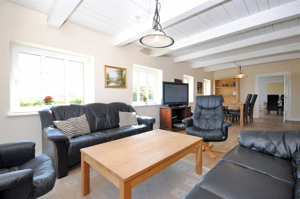 Im geschmackvoll eingerichteten Wohnzimmer, von dem Sie auch den Blick auf den Fjord genießen können, gibt es Stereoanlage mit CD-Spieler und TV mit digitalem Satellitenanschluss. Die Schlafplätze des Hauses verteilen sich auf 6 Zimmer, alle mit Doppelbett – davon befinden sich 3 Zimmer im Erdgeschoss und 3 Zimmer im Obergeschoss. Kinderbett und 2 Kinderhochstühle für die Kleinsten.