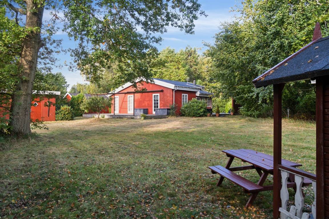 Das große Grundstück von 2.445 Quadratmetern liegt ruhig und ungestört, mit hoher Bepflanzung und Bäumen rund um das Gelände. Das Grundstück ist eingezäunt, sodass Kinder und Haustiere sicher spielen können, und es gibt reichlich Platz für Spiele und Ballspiele. Ein Spielhaus ist ebenfalls vorhanden. Es gibt eine Garage mit elektrischem Tor für das Auto.