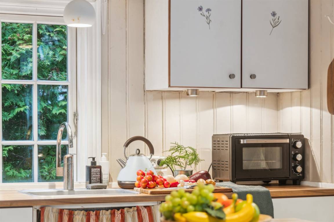 Das Haus wird umweltfreundlich mit einer Luft-zu-Luft-Wärmepumpe beheizt, und es gibt auch einen Kaminofen.