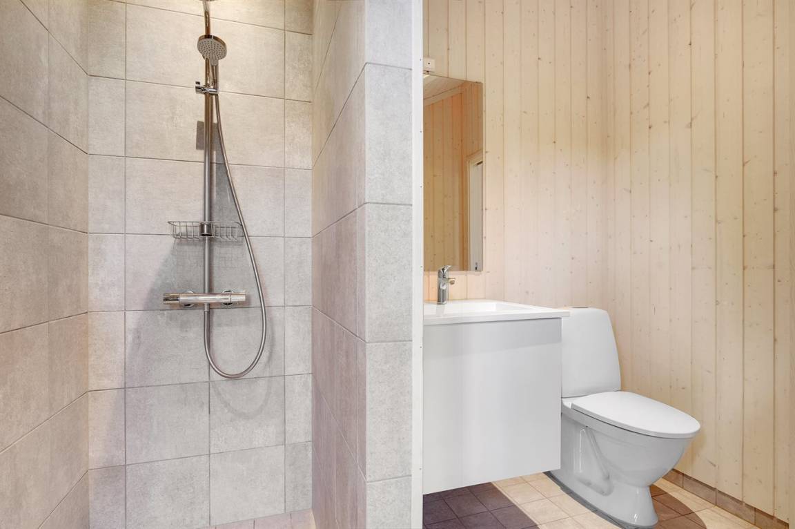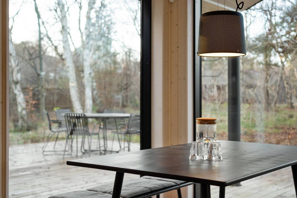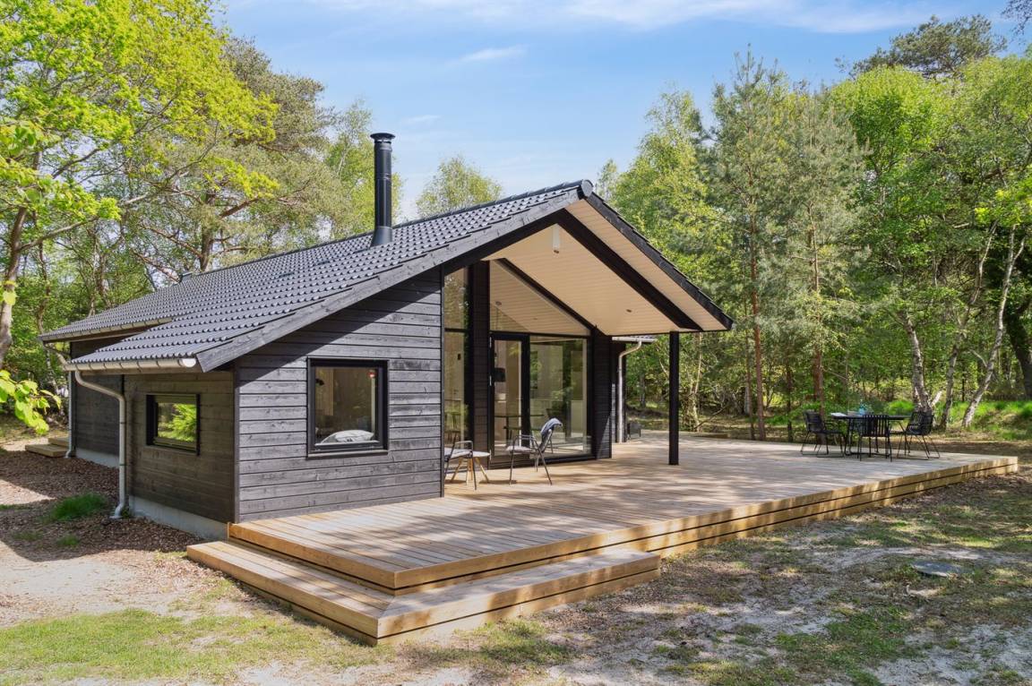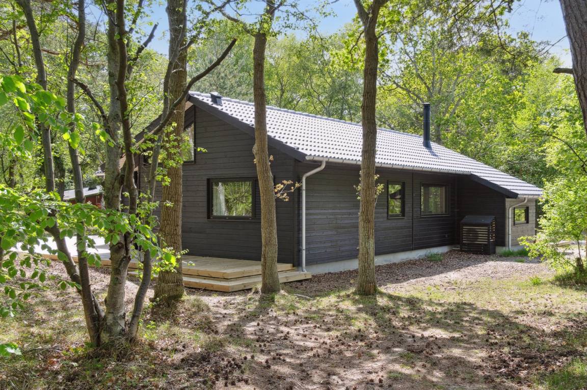 Dieses neue, moderne Ferienhaus liegt auf einem großen Naturgrundstück mit hohen Bäumen, nur 175 m von einem der besten und kinderfreundlichsten Sandstrände Dänemarks entfernt. Das Haus ist ringsherum von einer riesigen Holzterrasse mit Außenduschen umgeben, die teilweise überdacht ist. Hier finden Sie immer Sonne, Schatten oder Windstille.