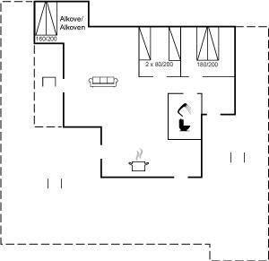 SchlafverhältnisseDie Schlafplätze verteilen sich auf 2 Schlafräume. 2 Schlafplätze in einem Doppelbett. 2 Schlafplätze in Einzelbetten.2 Schlafplätze im Alkoven. - 2 von diesen Schlafplätzen befinden sich im Wohnzimmer.
