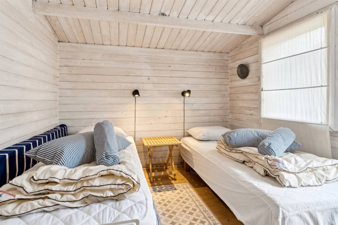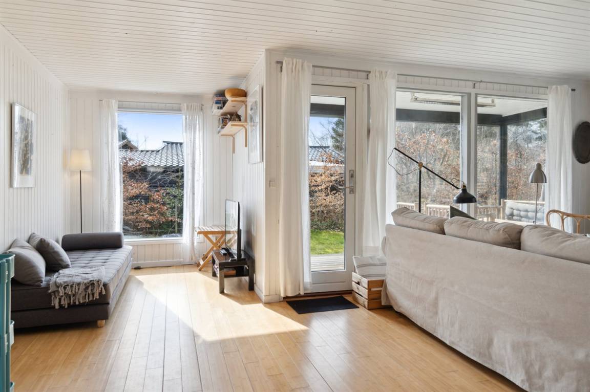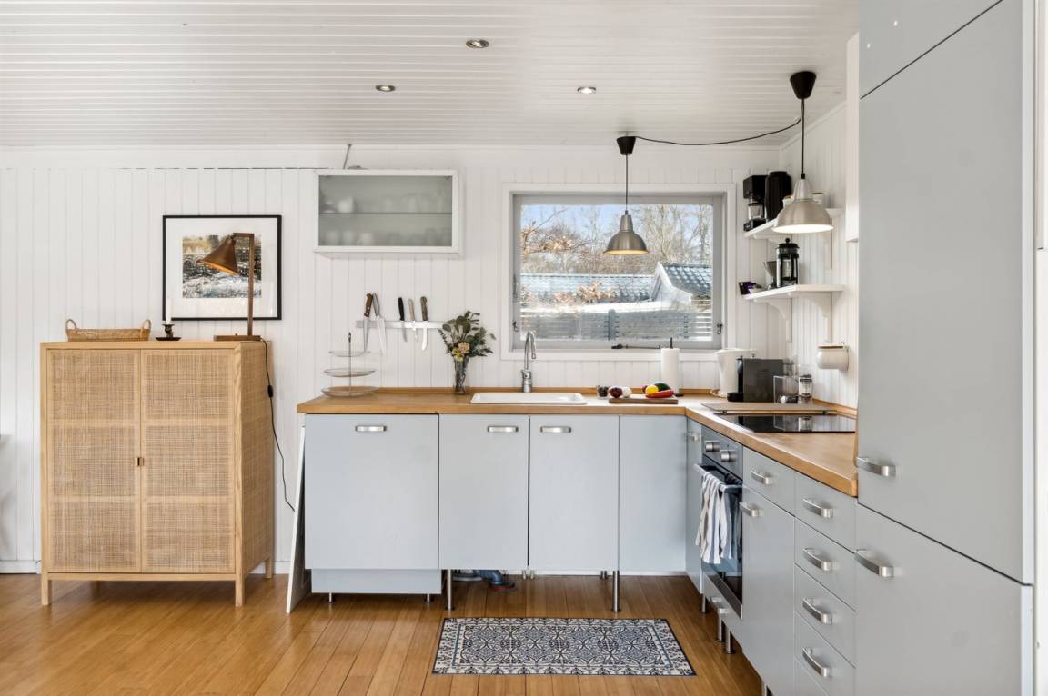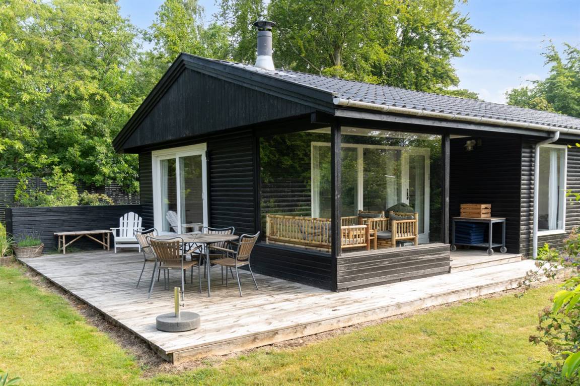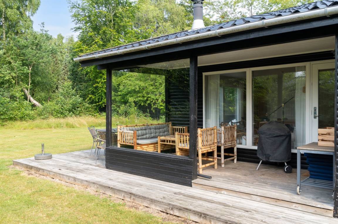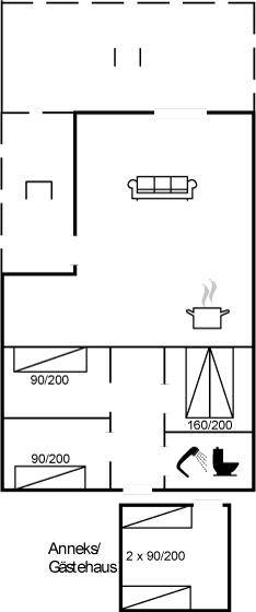 Das Haus verfügt über einen gemütlichen Küchen- und Wohnbereich in offener Verbindung, und Zugang zur überdachten Terrasse sowie zum restlichen Terrassenbereich und Garten bietet. Das Haus verfügt über 3 Schlafzimmer mit einem Doppelbett im einen und Einzelbetten in den anderen beiden Zimmern. Darüber hinaus gibt es ein Gästehaus mit 2 Einzelbetten. Das Haus bietet Platz für 6 Gäste von Woche 19 bis Woche 43. Den Rest des Jahres ist das Gästehaus nicht in der Vermietung enthalten, und das Haus bietet daher Platz für 4 Gäste. Das Badezimmer verfügt über eine Duschkabine und Fußbodenheizung. Das Grundstück ist eingezäunt, sodass Kinder und Haustiere sicher spielen können. Es gibt Glasfaser-Internet, eine Luft-Luft-Wärmepumpe und einen Holzofen.