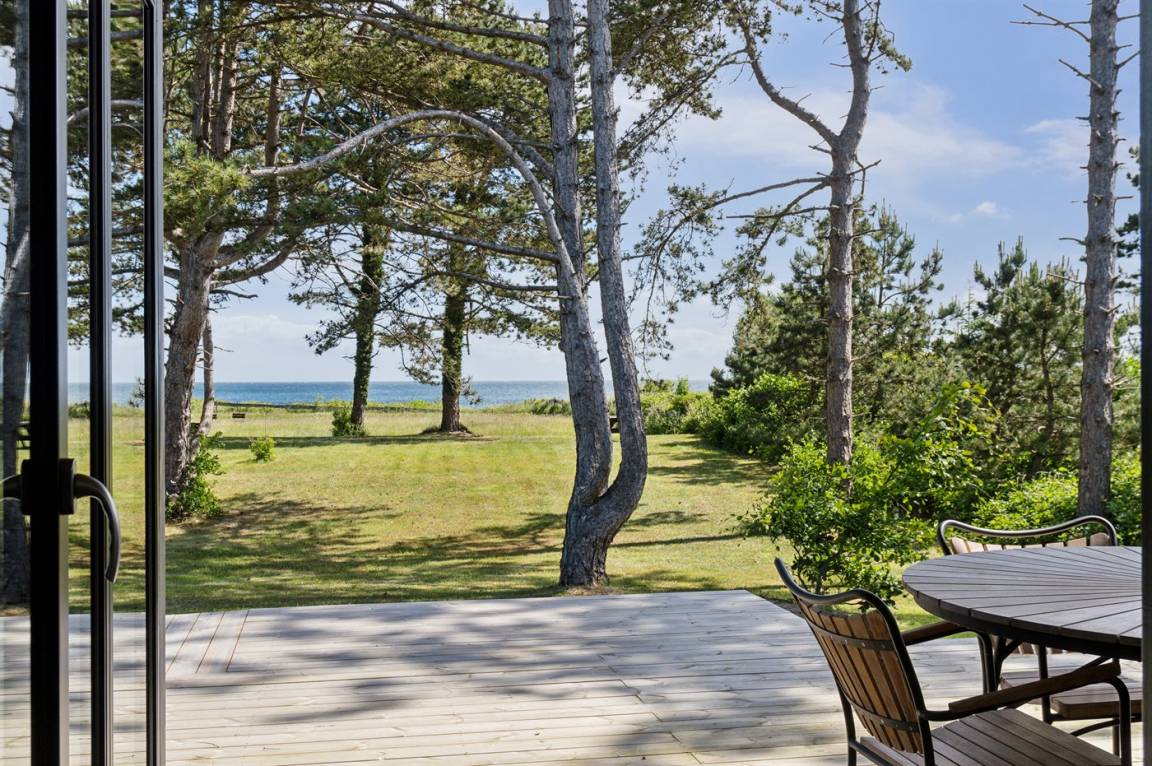 Das Ferienhaus befindet sich auf einem herrlichen Grundstück von 2527 Quadratmetern, auf dem große Bäume zu einer fast südländischen Atmosphäre beitragen und der Blick zwischen den Bäumen auf das Meer einfach fantastisch ist.