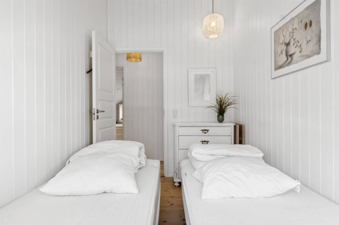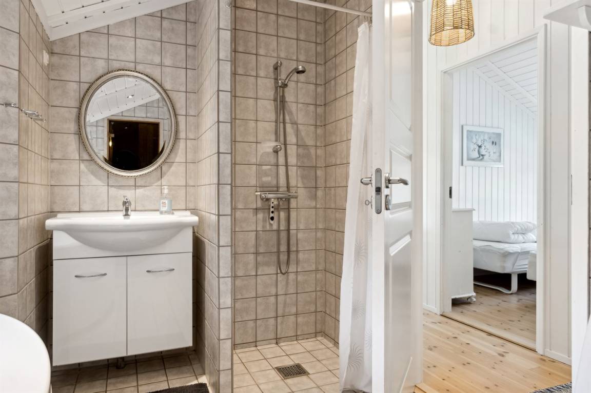 Das Haus verfügt über 4 gute Schlafzimmer mit jeweils 2 Schlafplätzen sowie 2 Badezimmer mit Duschnische und Fußbodenheizung. In einem der Badezimmer gibt es außerdem eine Badewanne, eine Sauna, eine Waschmaschine und einen Wäschtetrockner.