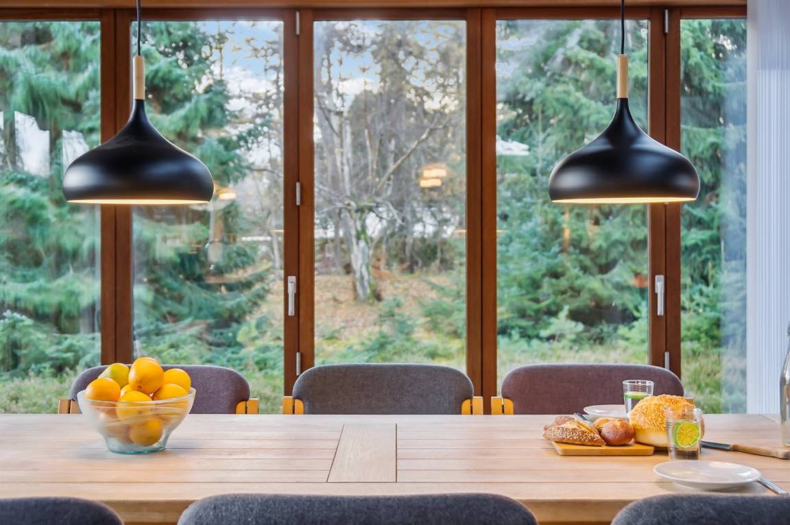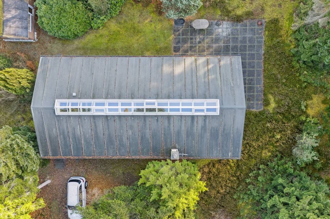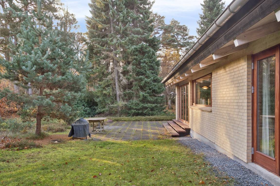 Das Haus hat eine Wohnfläche von ganzen 134 m² und in allen Räumen gibt es Decken bis zum First. Die großen Fensterfronten und das Oberlicht sichern ein gutes Lichteinfall. Die hohe Qualität des Hauses zeigt sich unter anderem in der wassergeführten Fußbodenheizung, die im gesamten Haus verlegt ist.