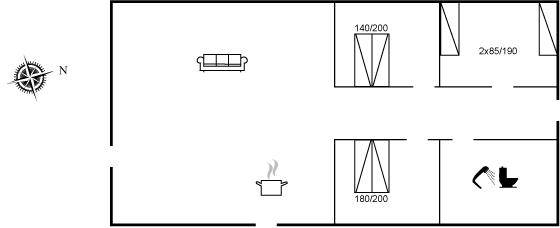 SchlafverhältnisseDie Schlafplätze verteilen sich auf 3 Schlafräume. 4 Schlafplätze in Doppelbetten. 2 Schlafplätze in Einzelbetten. Ferner steht ein Kinderbett zur Verfügung.