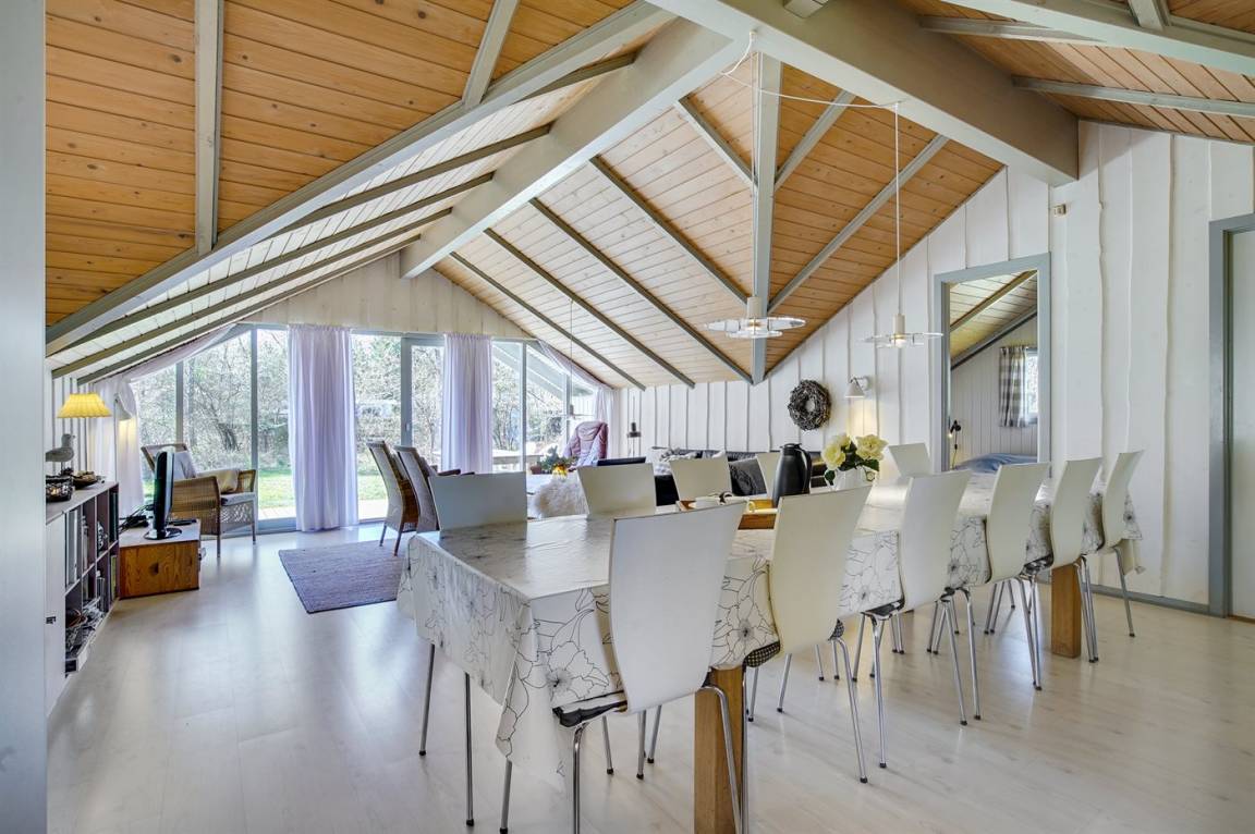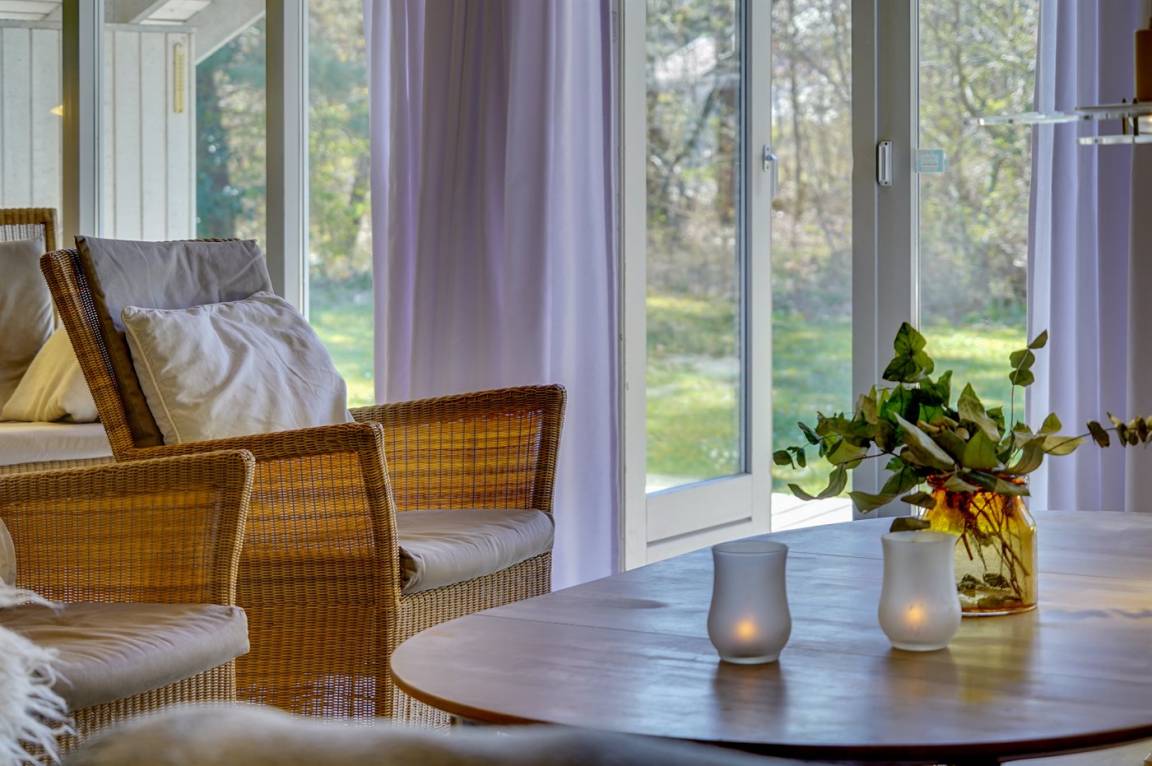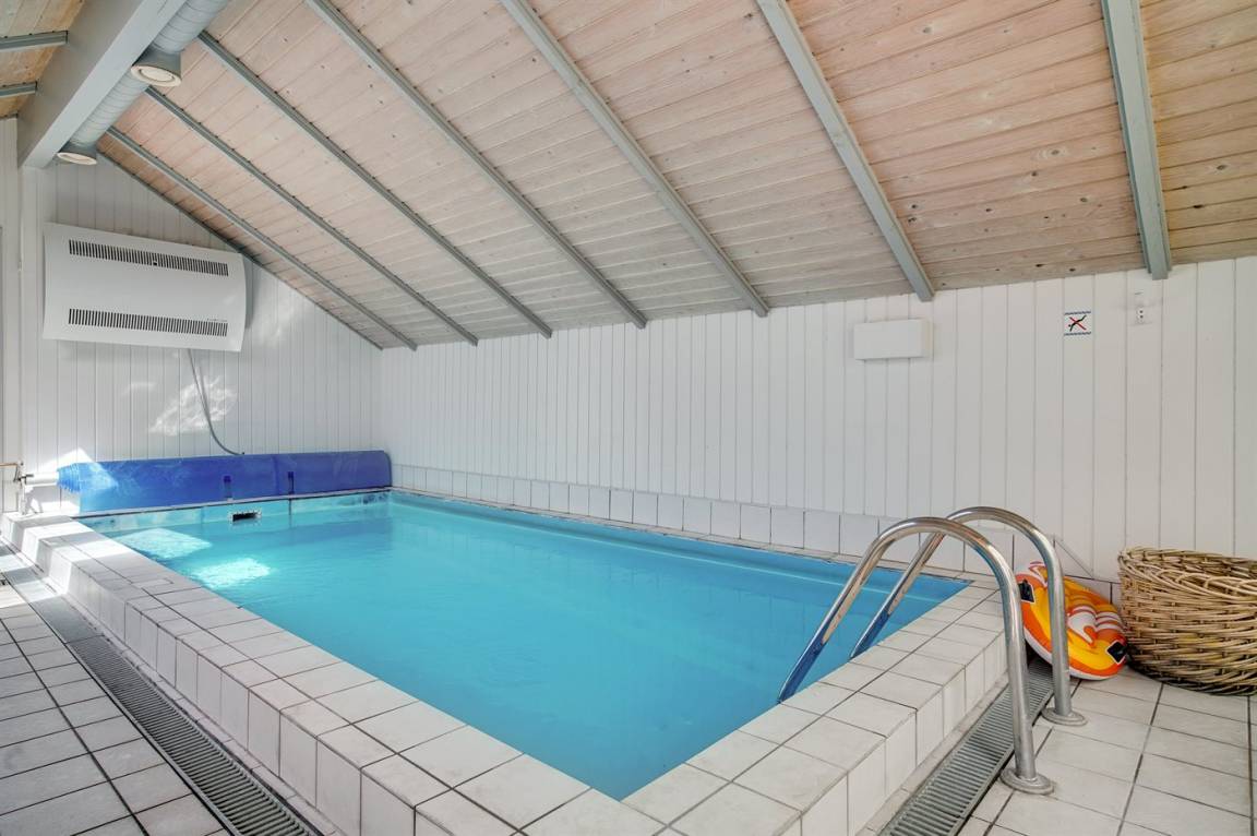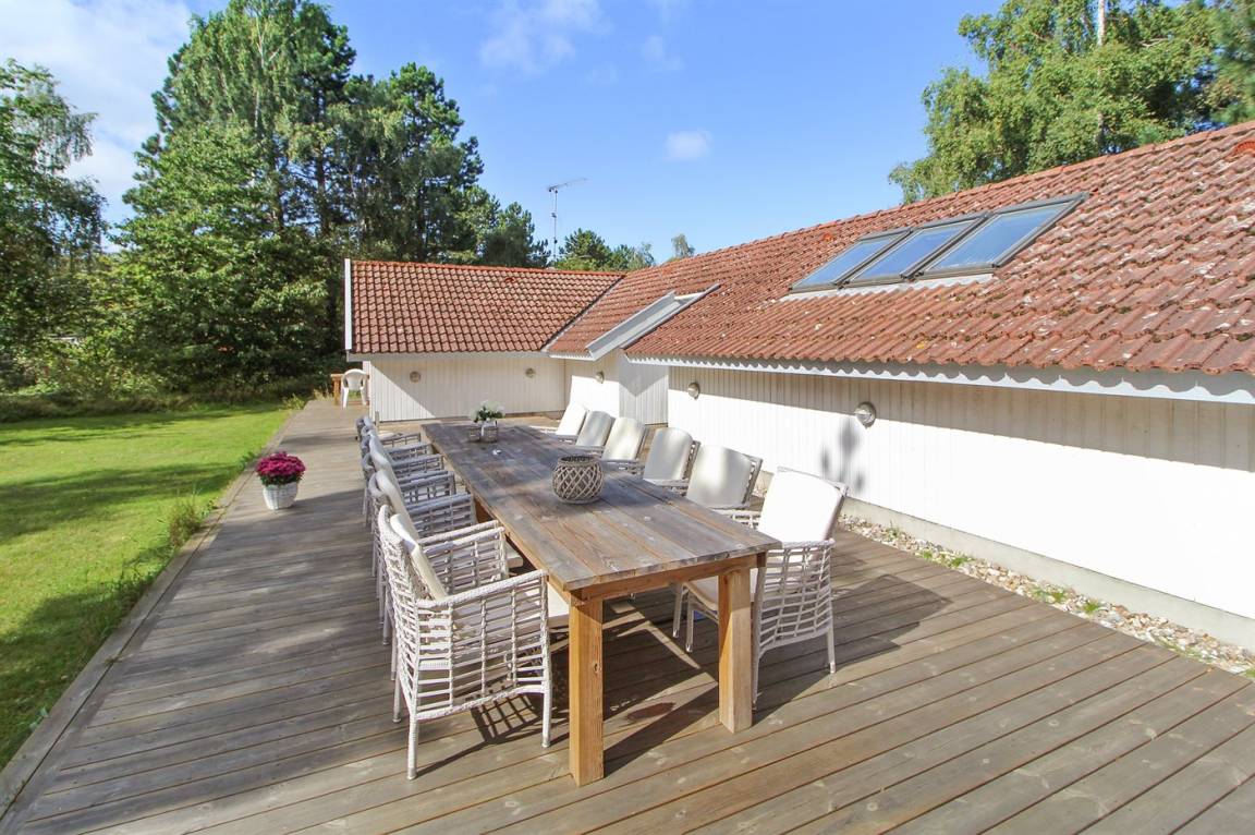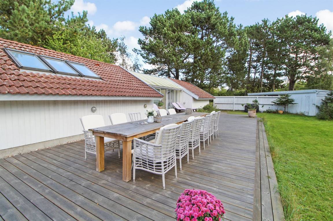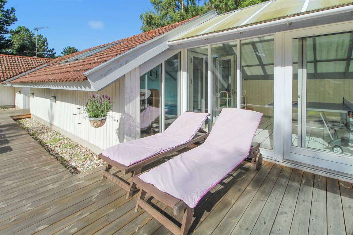Wünschen Sie sich einen angenehmen Urlaub mit Ihrer Familie oder mit Ihren Freunden, dann ist die Möglichkeit hier. Wir können Ihnen dieses Ferienhaus älteren Jahrgangs (1990) mit Swimmingpool, Whirlpool und Sauna anbieten. Das Haus liegt auf einem großen, abgeschirmten Naturgrundstück, nur 500 m von einem der besten Badestrände Nordseelands; Nordstrand entfernt. Innen gibt es Holzwände und -decken. Holzböden im Wohnzimmer und in den Zimmern, sonst Klinkerböden. Das Haus ist für 2 Familien geeignet. Es gibt 12 komfortable Schlafplätze auf 6 Schlafzimmer verteilt: 5 mit Doppelbett und 1 mit 2 Einzelbetten. Außerdem 3 Badezimmer mit Duschnische und Fußbodenheizung. Das eine Badezimmer enthält auch eine Sauna. Die Küche ist mit Mikrowelle, Geschirrspüler sowie Herd mit Umluftofen und Ceran-Feld ausgestattet. Die Küche ist mit dem großen Wohnzimmer kombiniert, das u. a. TV mit digitalem Satellitenanschluss, DVD-Spieler sowie Stereoanlage mit Radio und CD-Spieler enthält. In der Pool-Abteilung mit beheiztem Klinkerboden finden Sie den Swimmingpool (5,0 X 3,0 X 1,35 m) und einen 3-Pers.-Whirlpool. Großer Wintergarten mit u. a. Tischtennis und Ausgang zu großer Terrasse mit div. Gartenmöbeln. Ein Teil der Terrasse ist überdacht. Außerdem stehen kabellose Internetverbindung via Glasfasernetz, Waschmaschine, Wäschetrockner, Kinderbett, Kinderhochstuhl, Schaukel und Carport zur Verfügung. Gute Einkaufsmöglichkeiten in Nykøbing Sj.