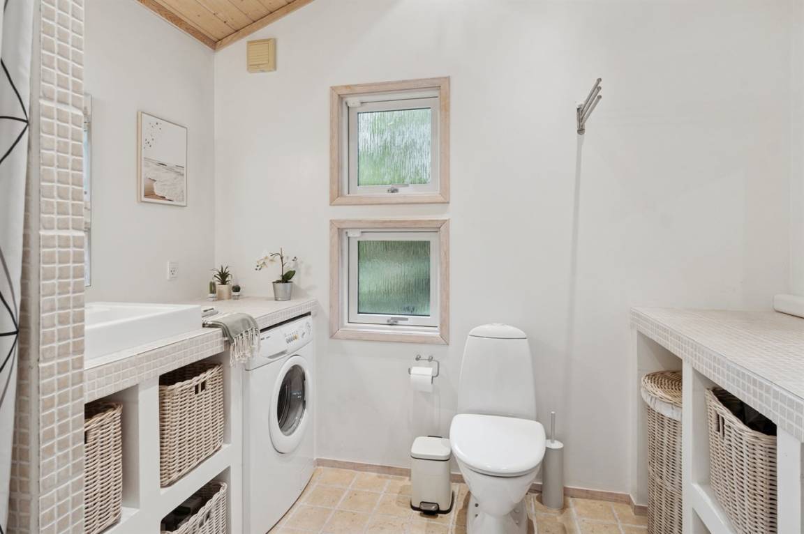 Küche, Essbereich und Wohnzimmer sind offen miteinander verbunden und bilden zusammen mit der großen, nach Süden ausgerichteten Terrasse die natürlichen Treffpunkte für das gemütliche Beisammensein mit Familie und Freunden. Ein Teil der Terrasse ist überdacht, sodass du dich im Schatten aufhalten und die langen, hellen Sommerabende genießen kannst. Im gesamten Haus sorgen Decken bis zum First und guter Lichteinfall für eine einladende Atmosphäre.