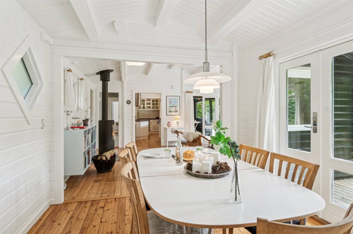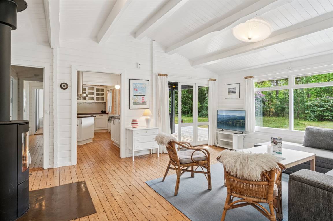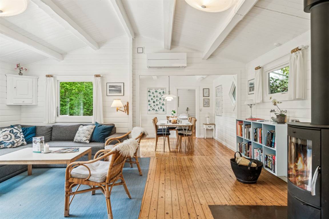 Sehr schönes und charmantes Blockhaus am Ende einer Sackgasse auf einem ruhigen Naturgrundstück gelegen. Nicht weit vom Haus finden Sie einen sehr schönen Badestrand.