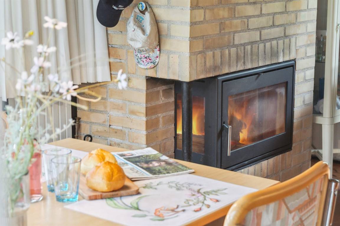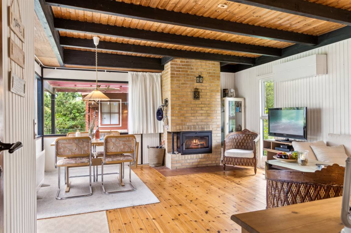 Das Haus wird energieeffizient mit einer Luft-Luft-Wärmepumpe beheizt, und für Gemütlichkeit sorgt ein Kaminofen.