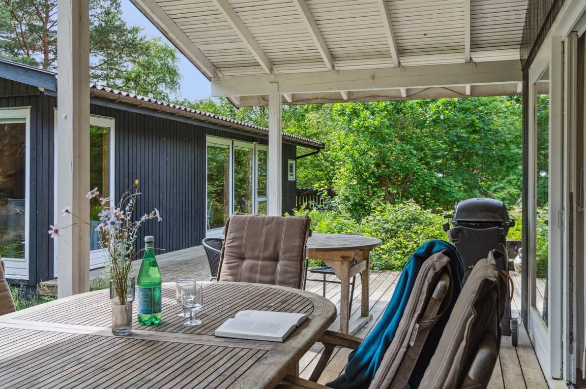DraußenDie Ferienunterkunft liegt auf einem 1682 m² großen Naturgrundstück. Die Entfernung zum Meer beträgt 250 m. Die nächste Einkaufsmöglichkeit liegt 900 m entfernt. In einem Abstand von 9100 m gibt es einen Golfplatz. Es steht ein 60 m² Terrassenareal zur Verfügung. Außerdem gibt es 20 m² überdachte Terrasse. Parkplatz auf dem Grundstück.