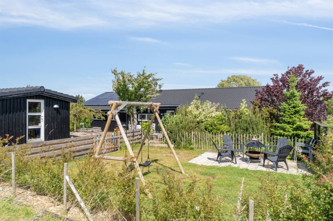 Das Haus liegt am Ende einer Sackgasse, und Kinder und Tiere können sich daher sicher bewegen. Im Garten gibt es reichlich Platz zum Spielen, und es gibt eine Schaukel und einen Lagerfeuerstelle. Übrigens: Das Grundstück ist von einem 50-80 cm hohen Zaun umgeben.