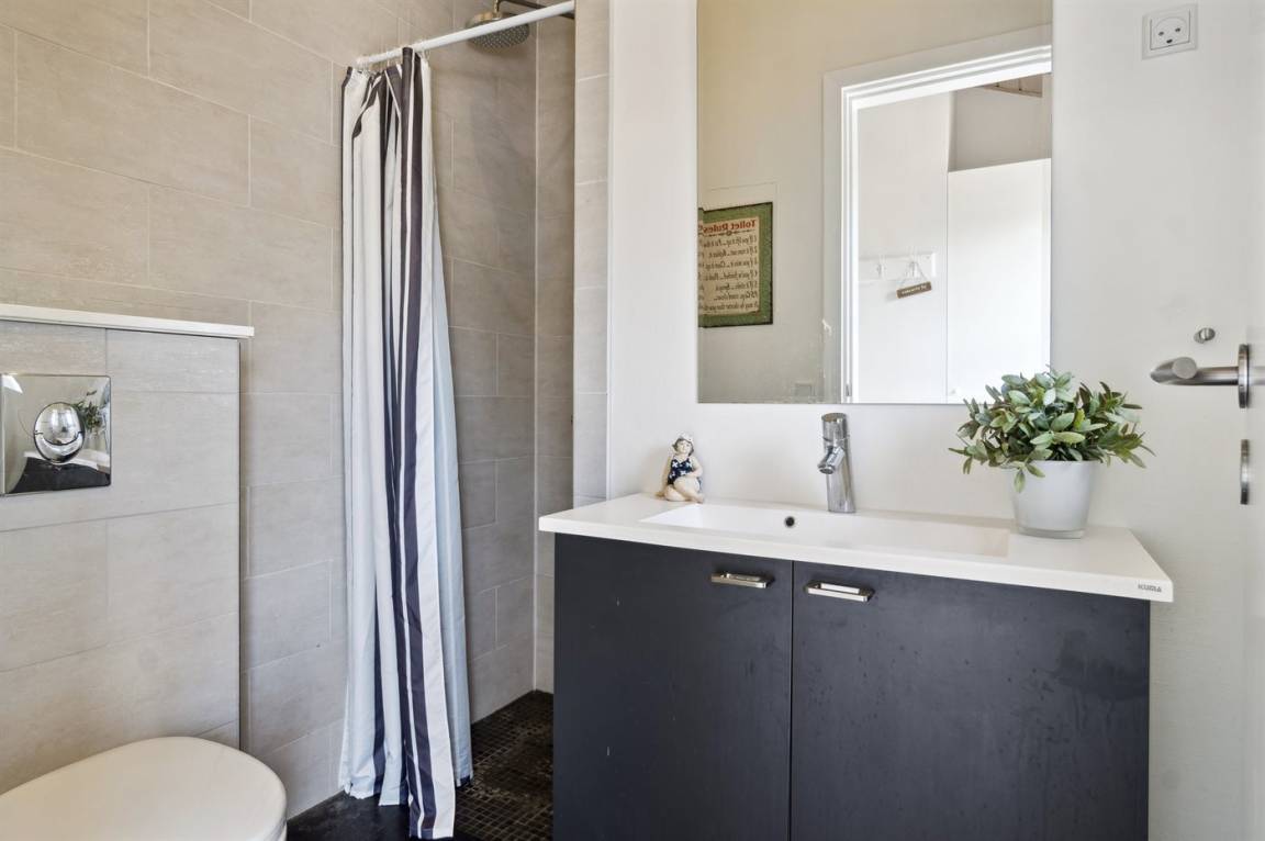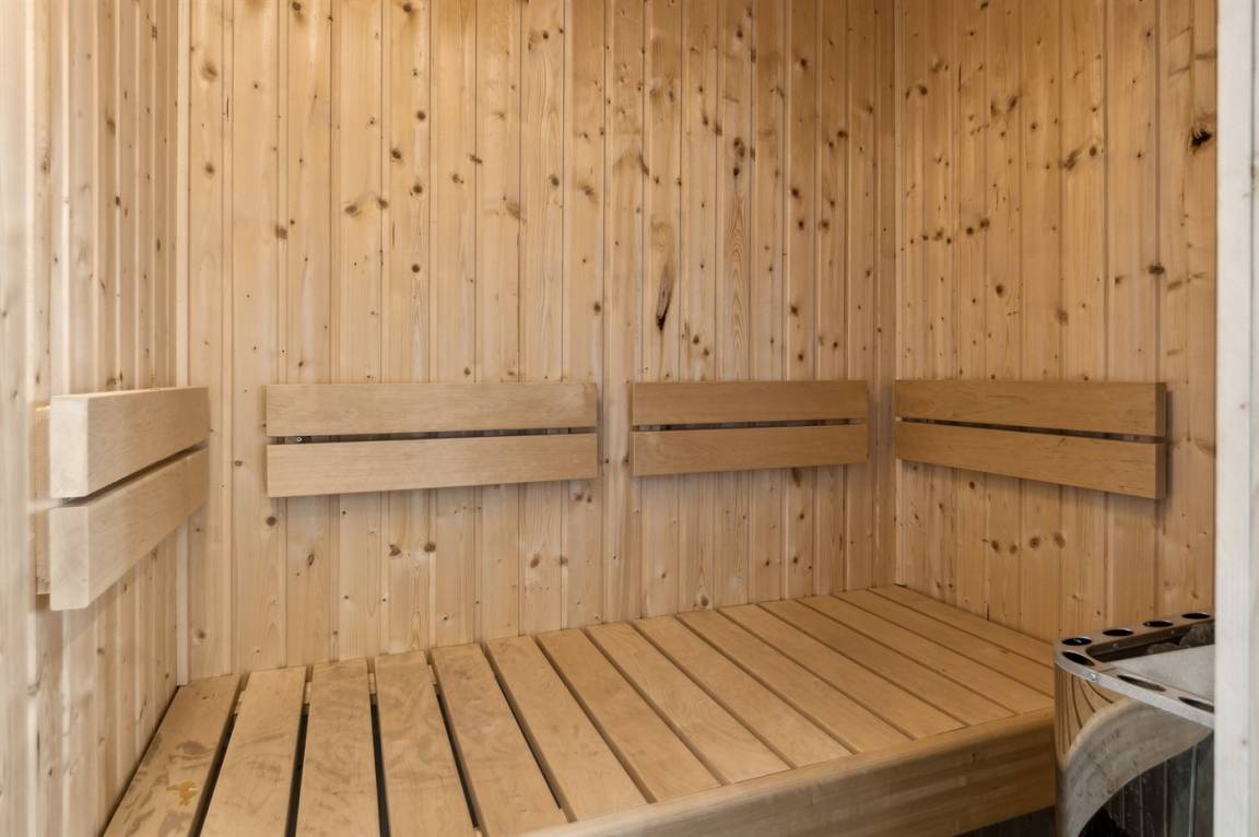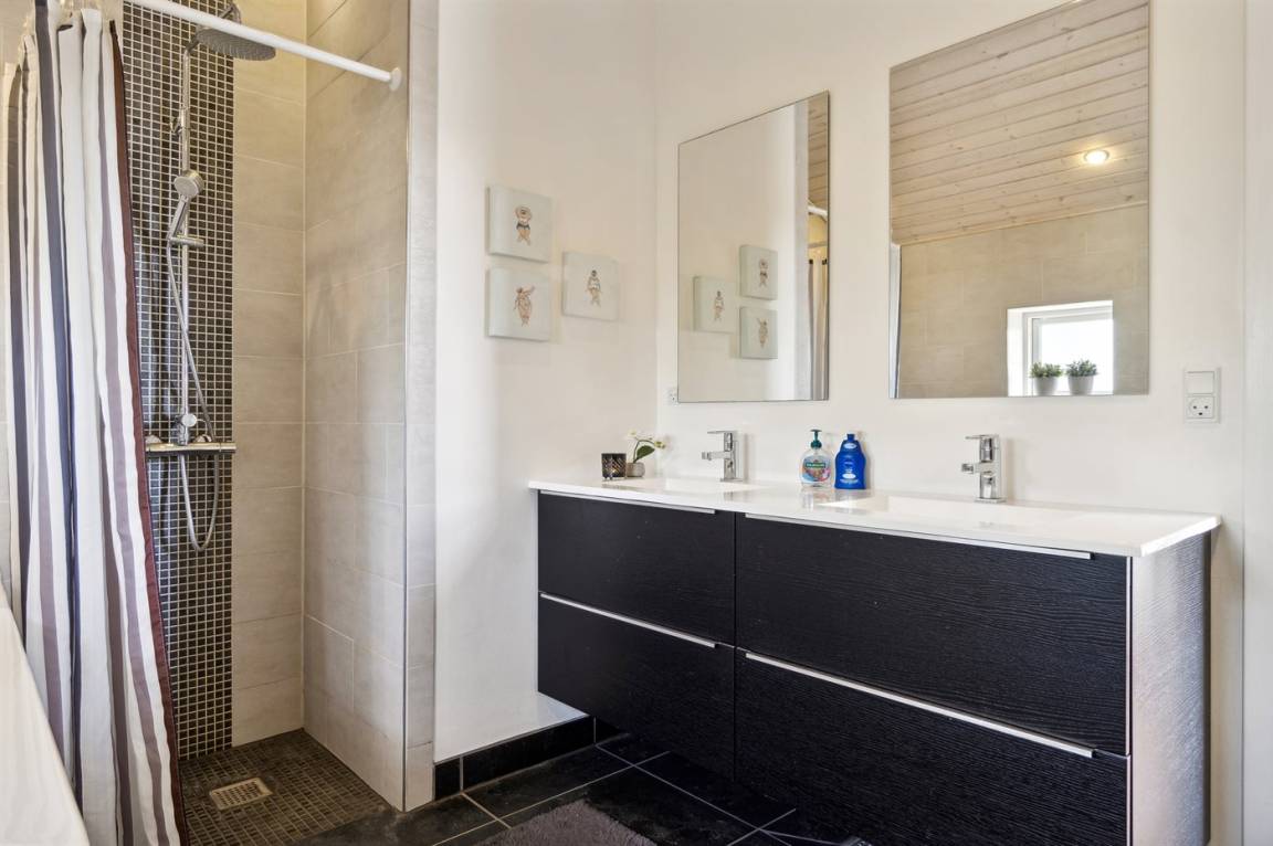 Es gibt 2 Badezimmer, beide mit Duscheniche und Fußbodenheizung. Im größten der Badezimmer gibt es außerdem einen Whirlpool und eine Sauna. Es gibt eine Waschmaschine und einen Trockner.