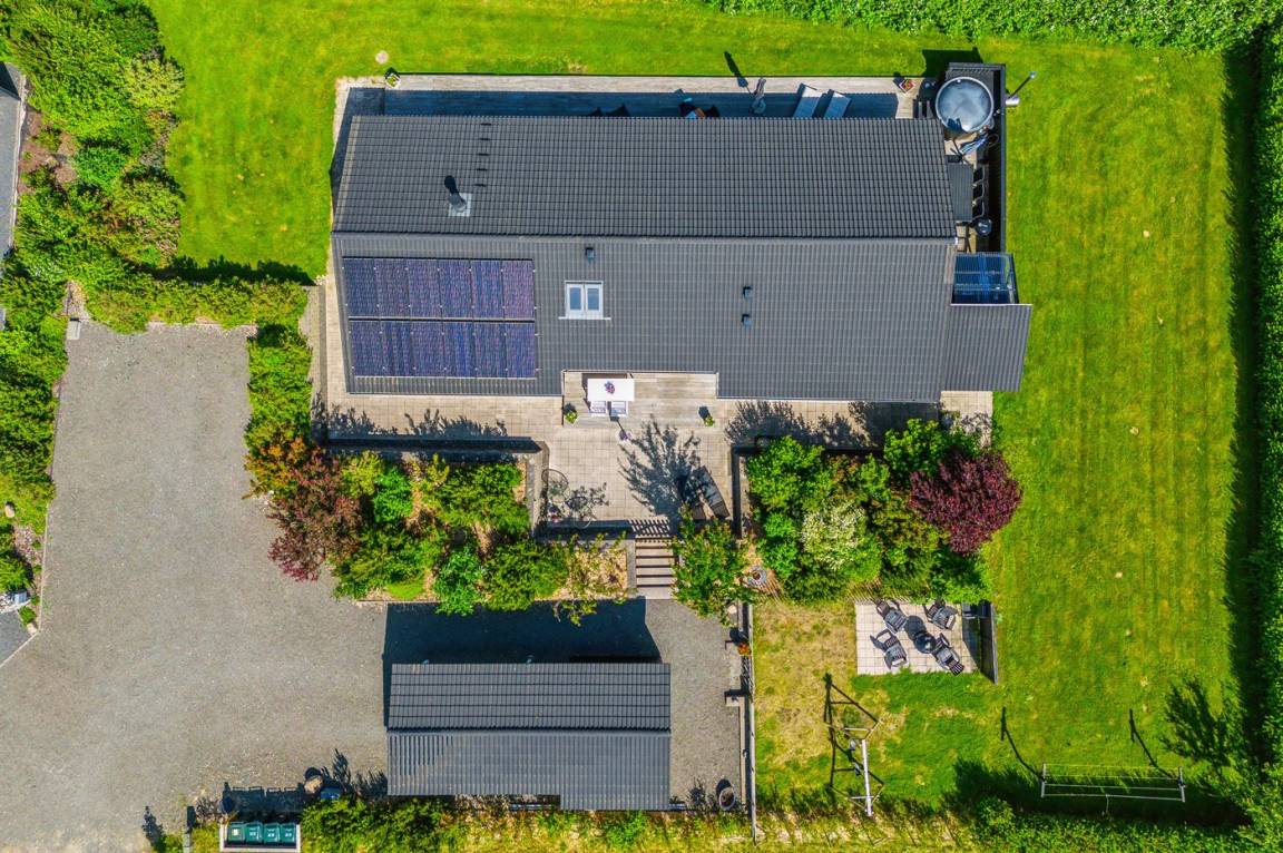 Die Heizung erfolgt energieeffizient mit 2 Luft-Luft-Wärmepumpen, und es gibt einen Kaminofen für gemütliche Stunden. Es gibt eine Solaranlage, die grünen Strom liefert. Es gibt eine Carport.