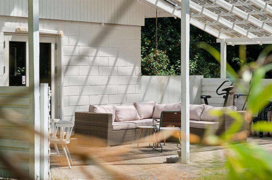 Auf dem großen Grundstück und auf den Terrassen, die größtenteils überdacht sind, lässt sich die frische Luft und die Natur bestens genießen. Das Herzstück des Hauses, die offene Küche mit angrenzendem Essbereich und Wohnzimmer, lädt zu gemütlicher Geselligkeit ein.
