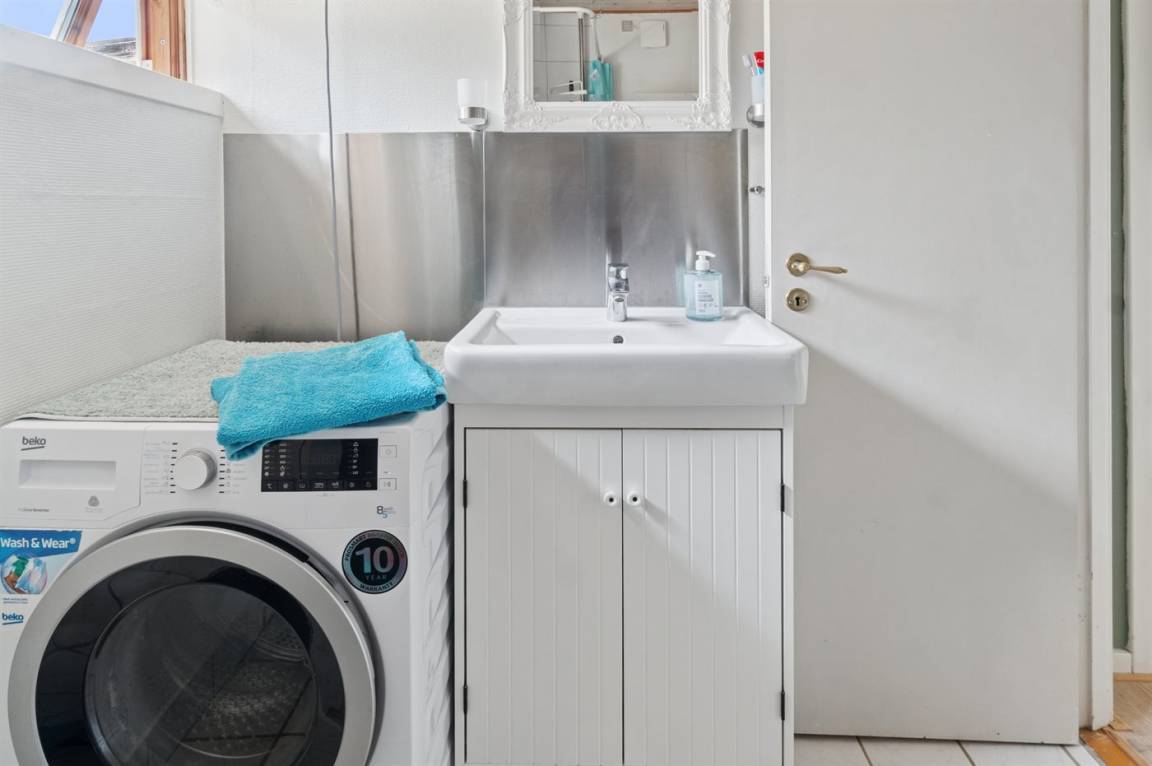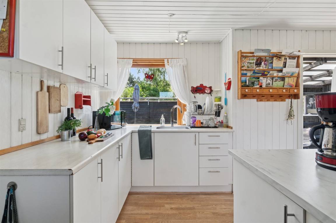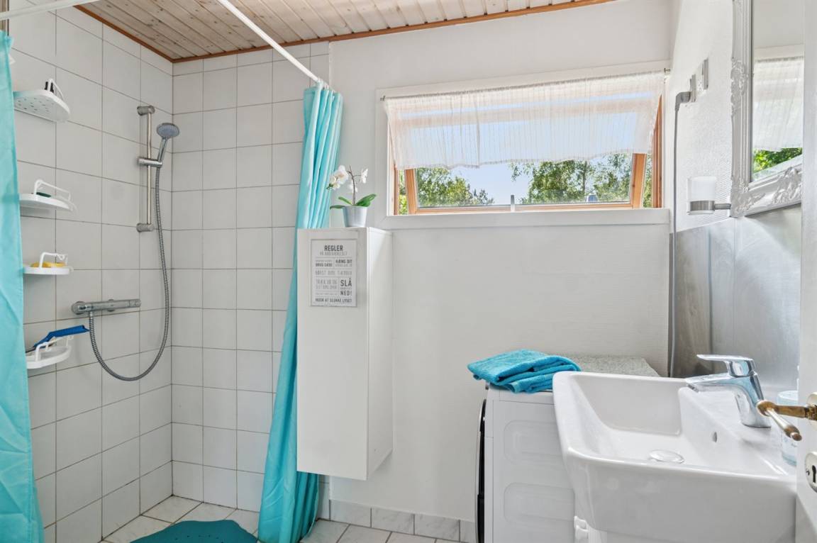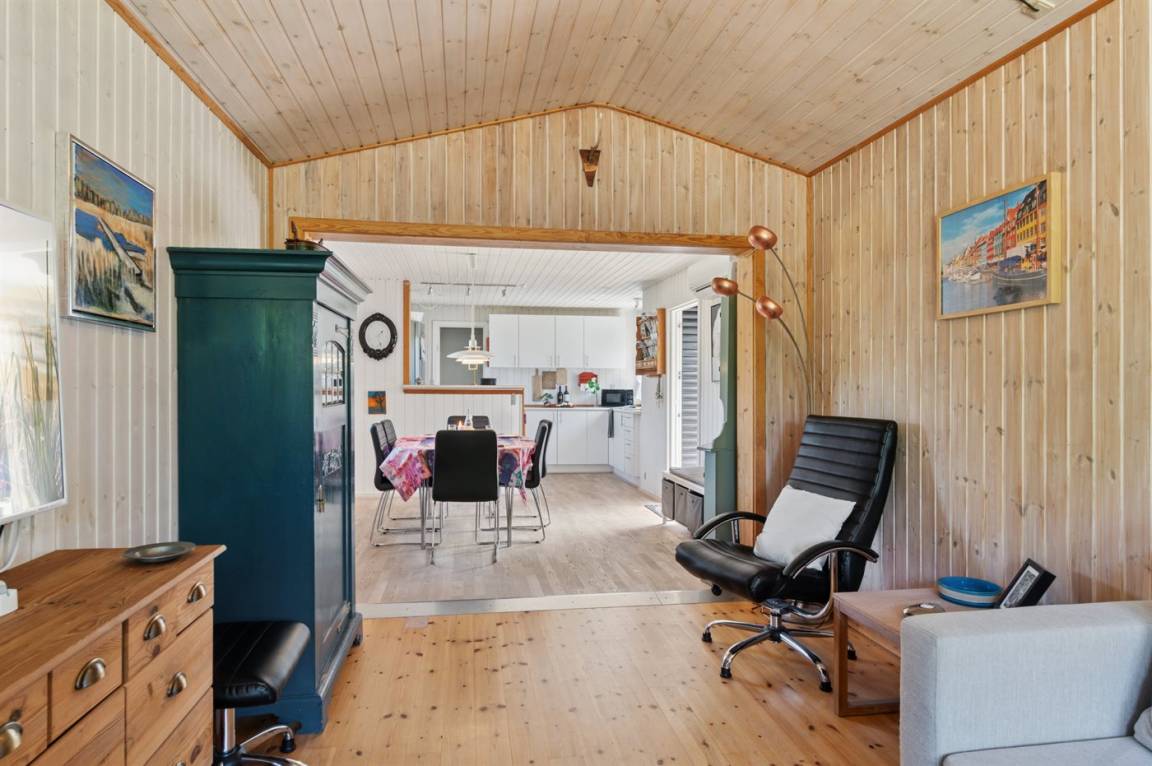 Auf dem Grundstück gibt es eine Rasenfläche mit viel Platz für Spaß und Spiel. Richtung Norden sind es nur 350 m bis Ebbeløkke Strand und Richtung Süden 950 m bis zum Strand mit Badesteg.