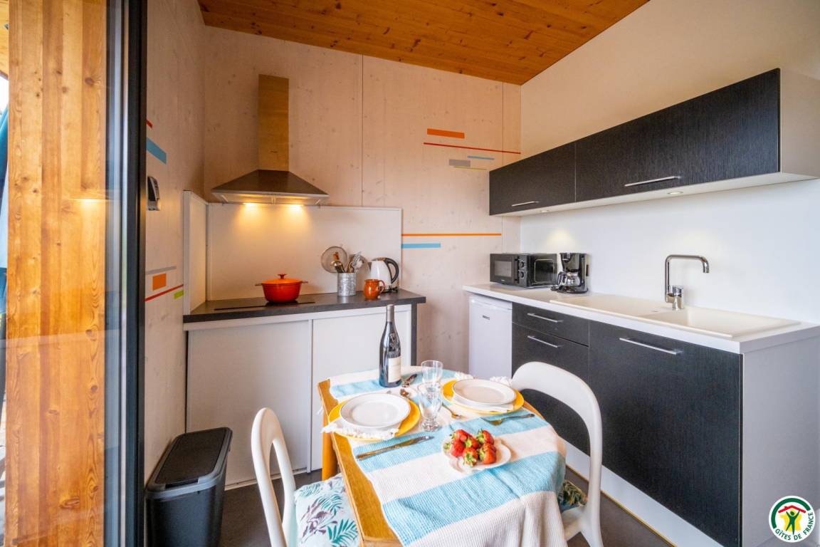 „Gite dominante bois avec vue magnifique sur la nature dans un quartier calme, stationnement à l'abri, accueil de chien et possibilite de balade pas loin. pas très loin des commerces appréciable le couloir eau et jacuzzi et super accueil de la propriétaire.on se ressource au calme“