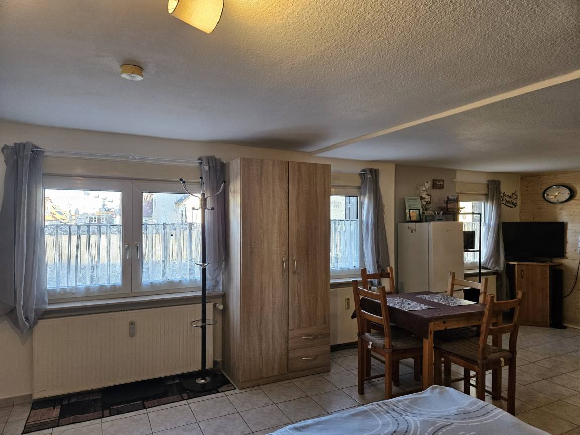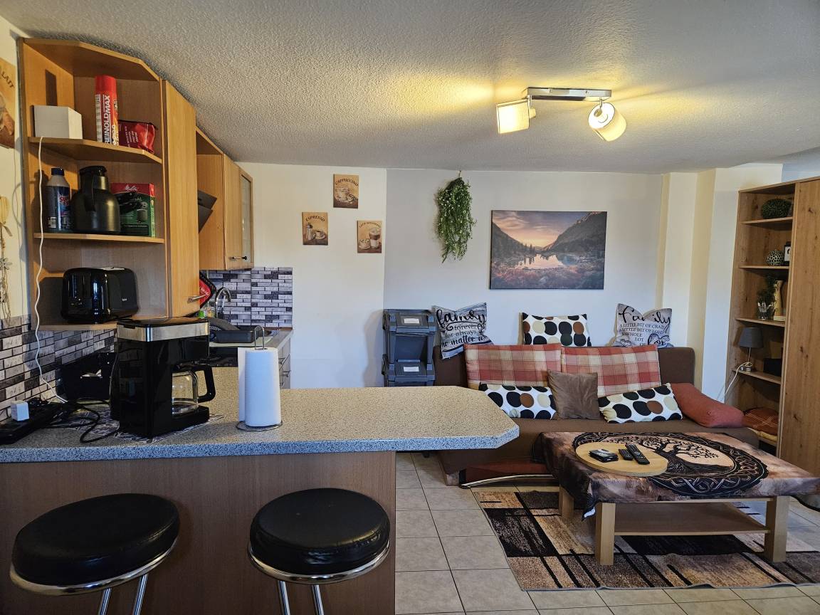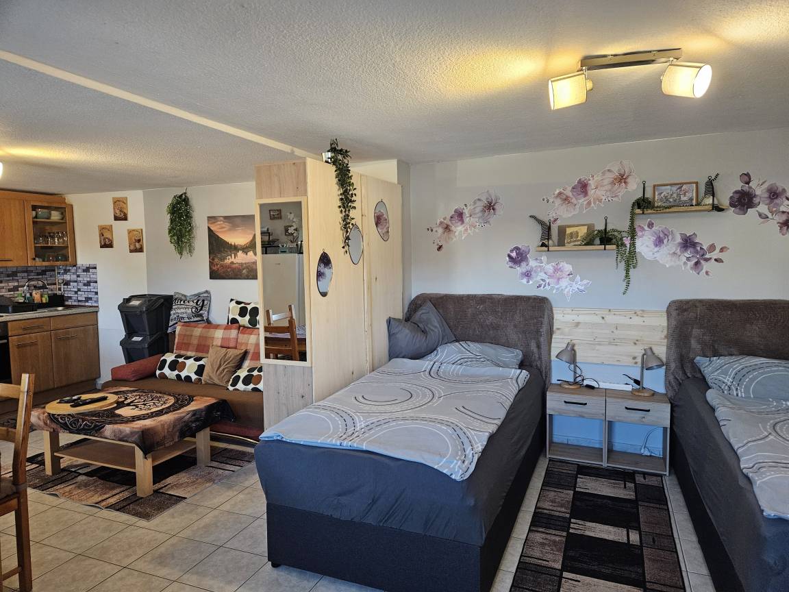 App. Angela ist nicht geeignet für Geräusch empfindliche Gäste, SAT-TV, WLAN, komplett eingerichtete Küchenzeile, Kühlschrank***, Herd mit Ceranfeld und Backofen sowie Dunstabzugshaube, Spülbecken, Filter-Kaffeemaschine, Wasserkocher, Mikrowelle, Geschirr, etc., Ein Schrank als Raumteiler trennen den Koch- und Essbereich optisch vom, mit zwei Diwanbetten ausgestatteten, Schlafbereich.