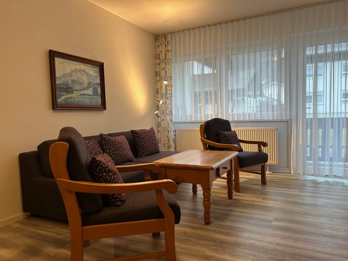 Für zusätzlichen Komfort verfügt die Ferienwohnung A3 über eine neuwertige Schlafcouch mit vollwertiger Matratze im Wohnbereich, auf der zwei weitere Personen bequem schlafen können. Der Balkon mit Bergblick nach Westen lädt dazu ein, den atemberaubenden Sonnenuntergang über den majestätischen Bergen zu genießen und hat einen direkten, barrierefreien Zugang zum Garten vom Balkon.