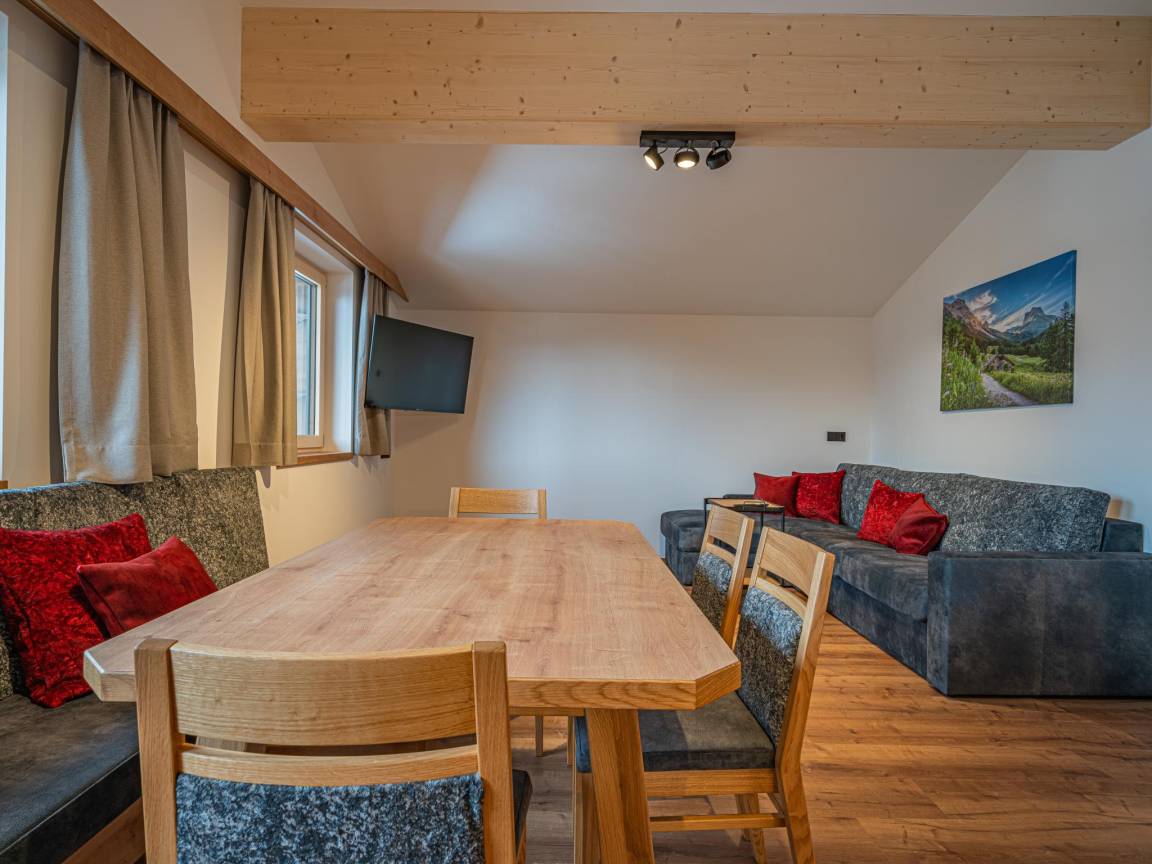 Hausbeschreibung : Diese charmante Fewo in der 2. Etage begeistert mit einem einmaligen Blick auf die Krimmler Wasserfälle direkt vom Balkon. Helle Räume, viel Holz und eine moderne, offene Gestaltung schaffen alpines Wohlfühlambiente. Zwei Schlafzimmer mit Doppelbett sowie zusätzlichen Schlafmöglichkeiten bieten Flexibilität, während TV, Waschmaschine und die gemütliche Schlafcouch für Komfort sorgen. Ein Rückzugsort mit besonderem Panorama