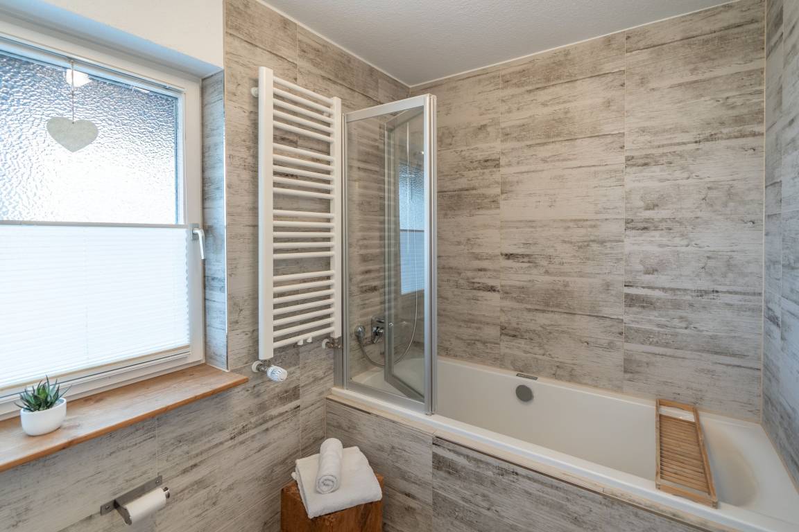 Die Ferienwohnung verfügt über zwei Schlafzimmer. Im Master-Schlafzimmer finden Sie ein komfortables Doppelbett für erholsame Nächte und einen Kleiderschrank vor. Das zweite Schlafzimmer ist mit TV und einem Daybed ausgestattet. Dieses kann tagsüber als Sitzcouch genutzt und nachts zum Doppelbett ausgezogen werden. Das moderne Badezimmer ist mit einem WC und einer Badewanne mit Whirlpoolfunktion ausgestattet.