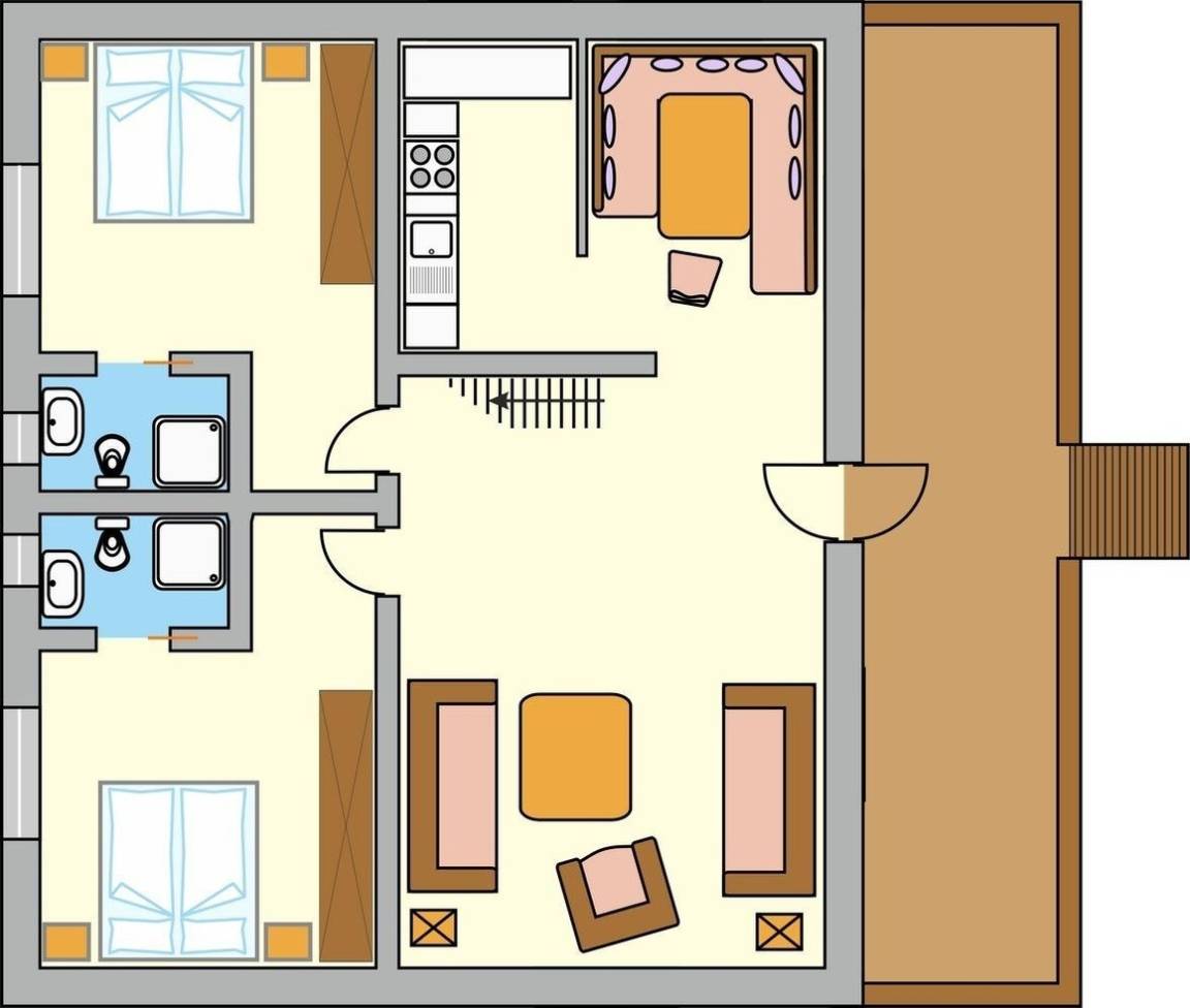 65 m² Ferienwohnung ∙ 2 Schlafzimmer ∙ 6 Gäste