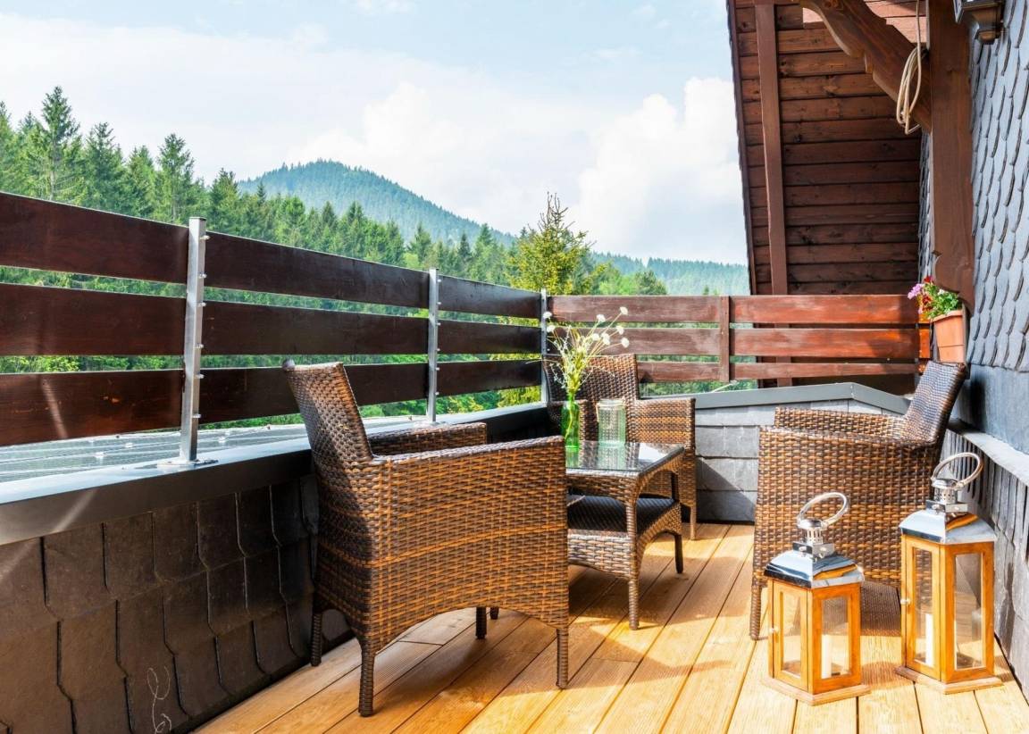 großer Balkon mit Sitzecke, Blick ins Grüne